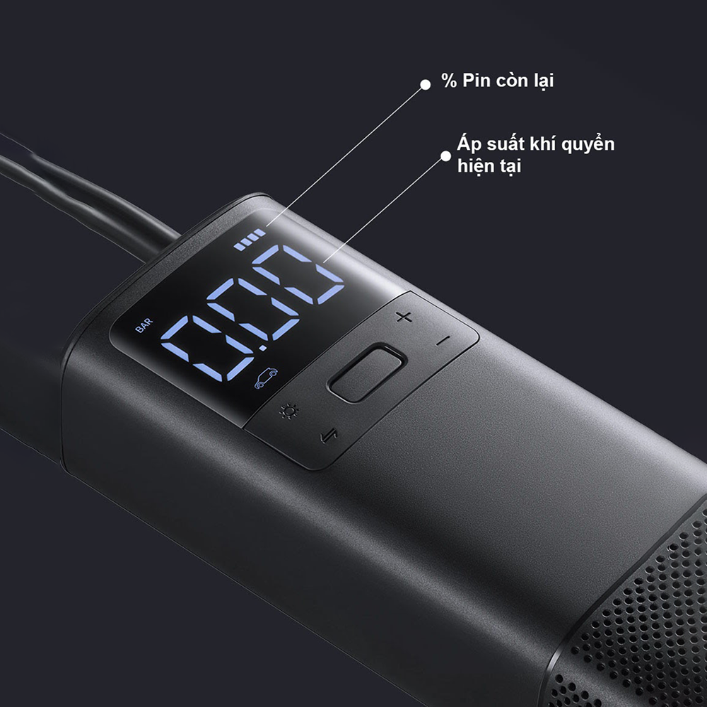 Ngoài ra, máy bơm cầm tay mini Xiaomi còn trang bị thêm một màn hình LED được bố trí trực quan và có độ lớn lên đến 2.2 inch. Hiển thị số lượng pin còn lại và chỉ số áp suất lúc này. Đồng thời độ sáng của màn hình này cũng rất lớn để cho dù có ở ngoài trời nắng gắt thì vẫn có thể nhìn thấy các thông số một cách dễ dàng.