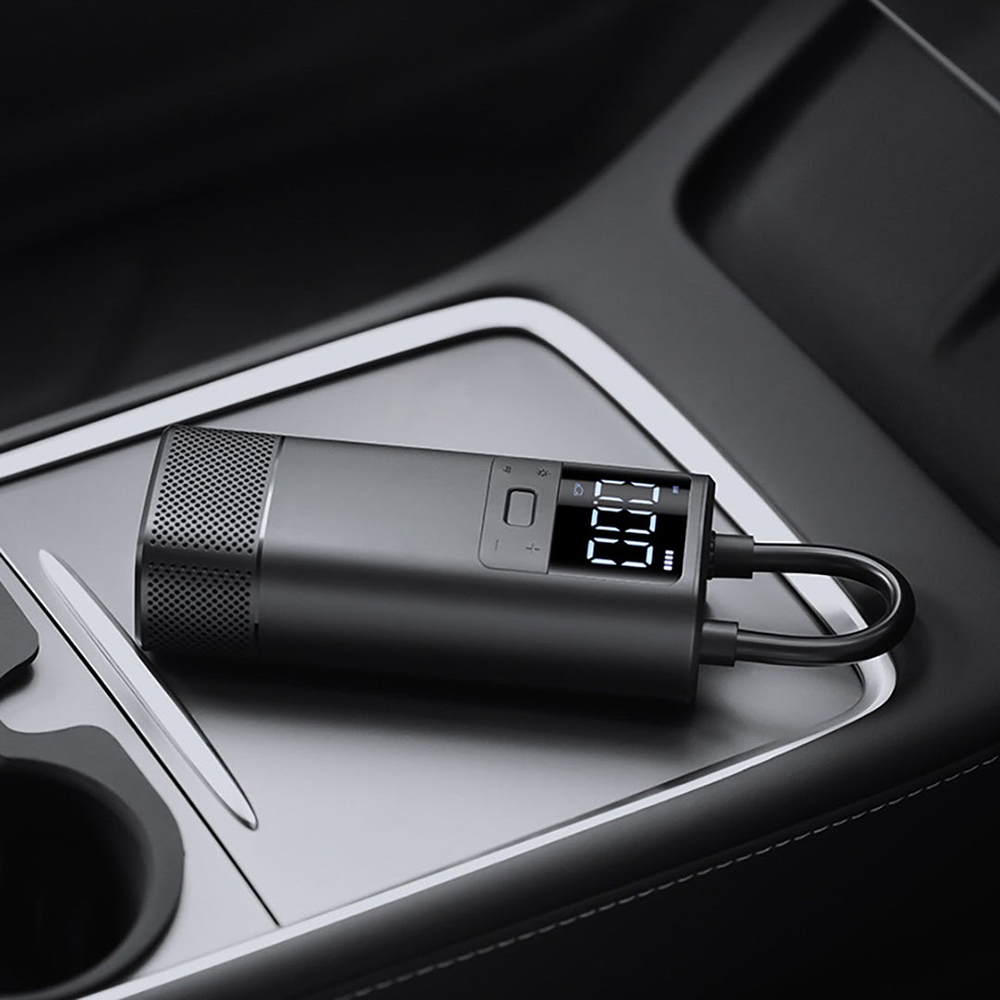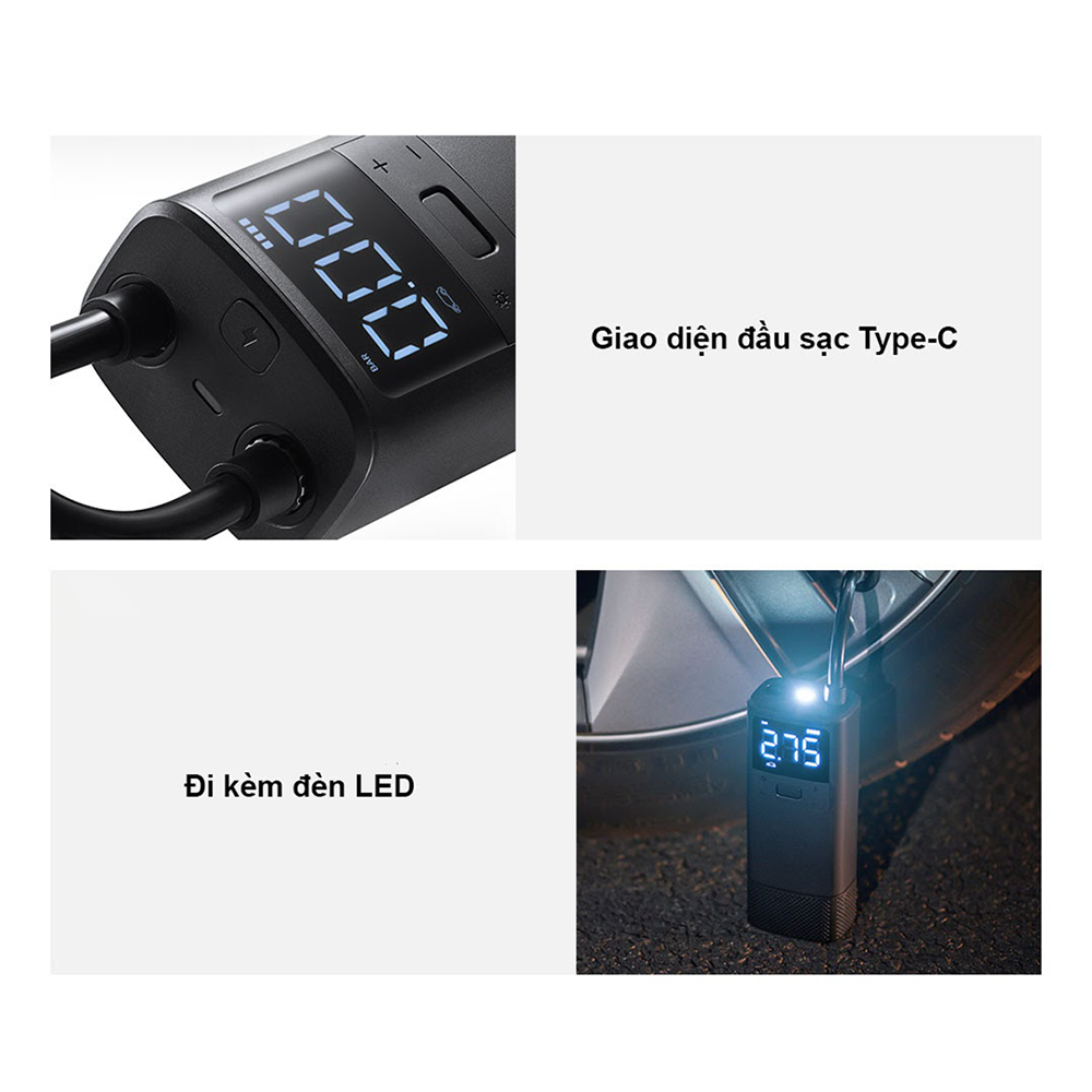 Để cung cấp nguồn cho thiết bị thì người dùng có thể sử dụng cổng sạc Type-C, rất tiện dụng và không cần phải trang bị thêm dây sạc giao diện khác. Kèm theo đó là đèn được trang bị để chiếu sáng trong trường hợp cần bơm xe khi đang ở ngoài đường lúc đêm.