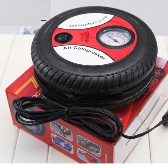 Bơm lốp tròn mini điện 12V đa năng - Máy bơm xe ô tô,xe máy chuyên dụng - Loại tốt nhỏ gọn