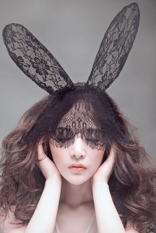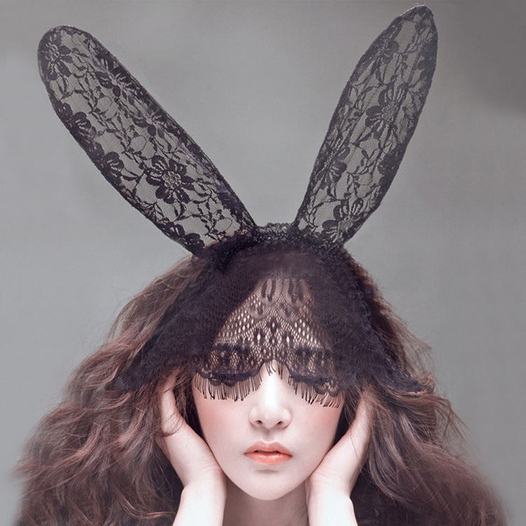 Bờm tai thỏ liền mặt nạ ren - Băng Đô Mặt nạ tai thỏ hoá trang sexy