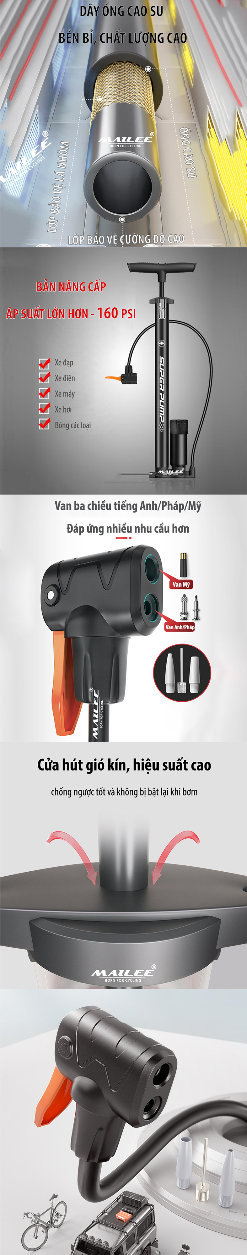 Bơm Tay Xe Đạp SP-P32 với tay cầm chống trượt, đầu bơm đa van 160PSI, Đa Dụng cho Xe Đạp, Xe máy, Xe Ô Tô, lõi nhôm bên trong, kín chống ngược khí - Mai LeeBơm Tay SP-P32 có khả năng bơm lốp lên đến...