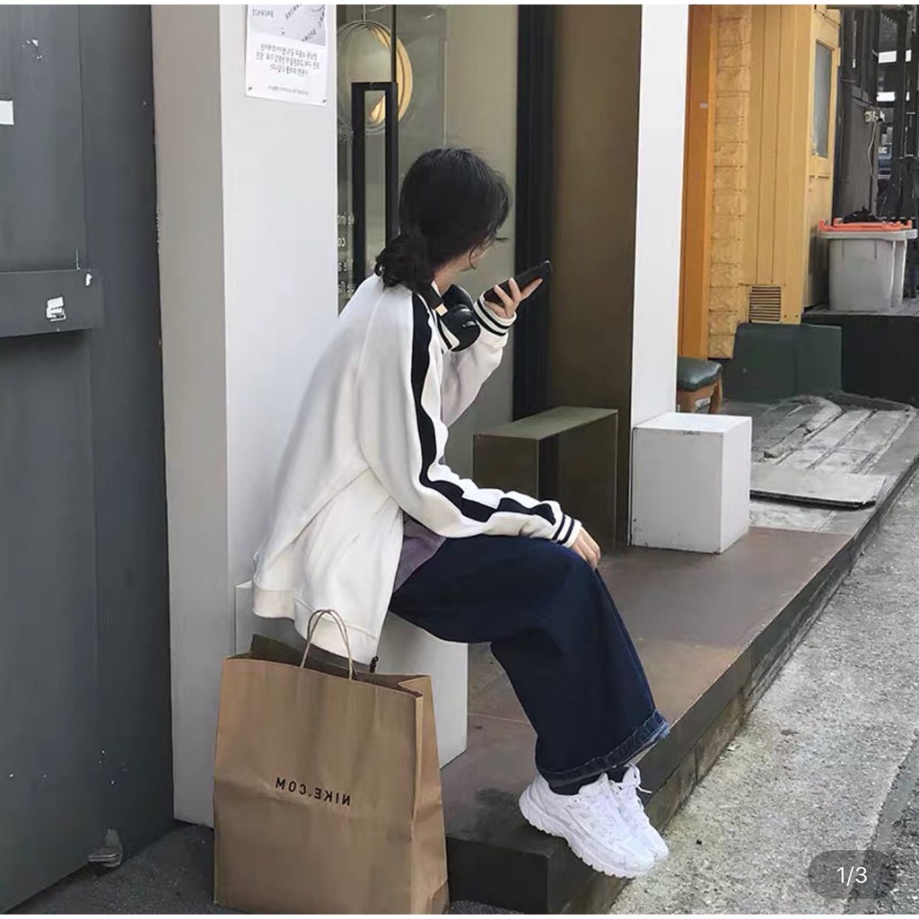 Thời Trang Nữ > Đồ liền thân > Đồ bay ngắn (playsuits) || Bomber nỉ trắng sọc tay - ẢNH THẬT