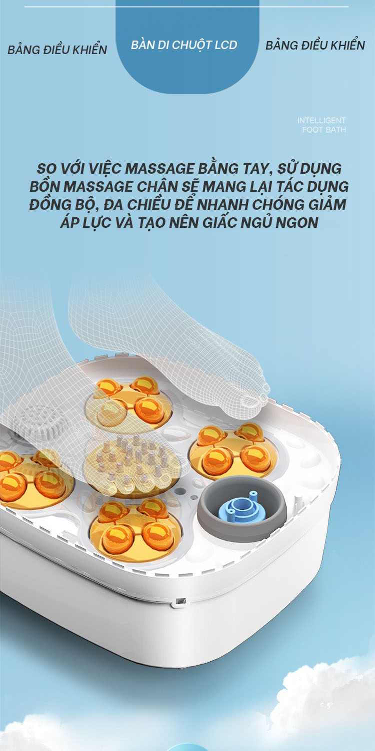 Hệ thống các loại con lăn, đầu mát xa gan bàn chân, kích thích các huyệt vị, thúc đẩy lưu thông tuần hoàn máu Chất liệu cách điện, an toan cho người dùng