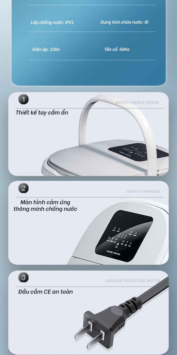 Thiết kế nắp đậy độc đáo giúp làm nóng nước nhanh và xông hơi bàn bàn chân
