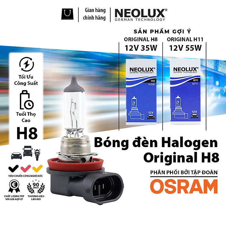 Bóng Đèn Halogen Original NEOLUX H8 12V sở hữu ánh sáng vượt trội cùng tầm nhìn bao quát vừa trải đều ánh sáng, không gây lóa mắt lại tăng khoảng cách chiếu sáng.