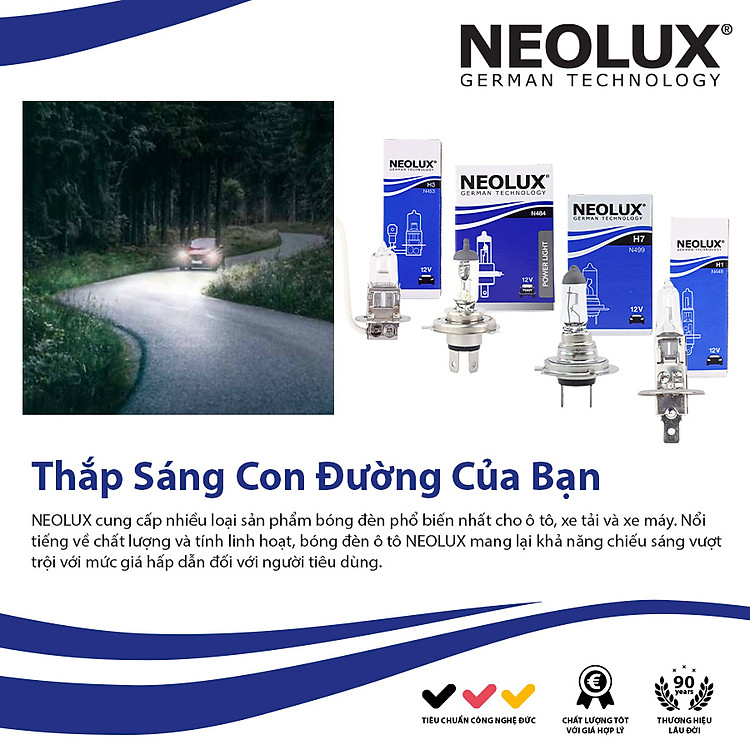 NEOLUX cung cấp nhiều loại sản phẩm bóng đèn phổ biến nhất cho ô tô, xe tải và xe máy. Nổi tiếng về chất lượng và tính linh hoạt, bóng đèn ô tô NEOLUX mang lại khả năng chiếu sáng vượt trội với mức giá hấp dẫn đối với người tiêu dùng.