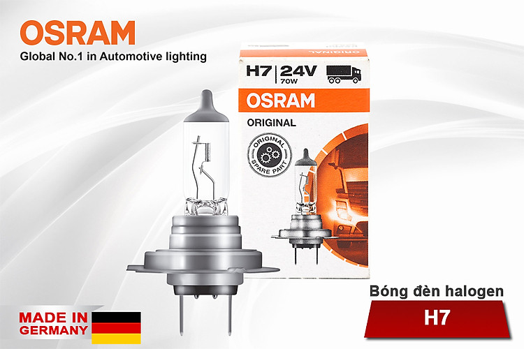 - Bóng Đèn Halogen OSRAM Original H7 64215 24V 70W được chế tạo bằng thủy tinh cao cấp đạt tuổi thọ sử dụng cao giúp hỗ trợ chiếu sáng hiệu quả trên những chặng đường dài