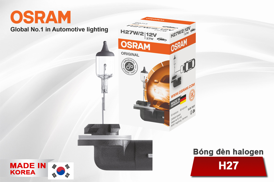 - Bóng đèn halogen OSRAM ORIGINAL H27 12v 27w (chân cong) được chế tạo bằng thủy tinh cao cấp đạt tuổi thọ sử dụng cao giúp hỗ trợ chiếu sáng hiệu quả trên những chặng đường dài