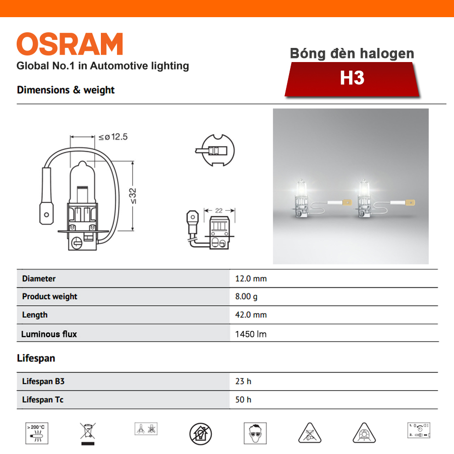 - Bóng đèn halogen OSRAM ORIGINAL H3 64151-01B 12v 55w được chế tạo bằng thủy tinh cao cấp đạt tuổi thọ sử dụng cao giúp hỗ trợ chiếu sáng hiệu quả trên những chặng đường dài