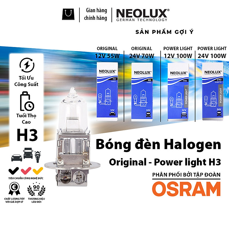 Bóng Đèn Halogen Power Light NEOLUX H3 12V 24V sở hữu ánh sáng vượt trội cùng tầm nhìn bao quát vừa trải đều ánh sáng, không gây lóa mắt lại tăng khoảng cách chiếu sáng.