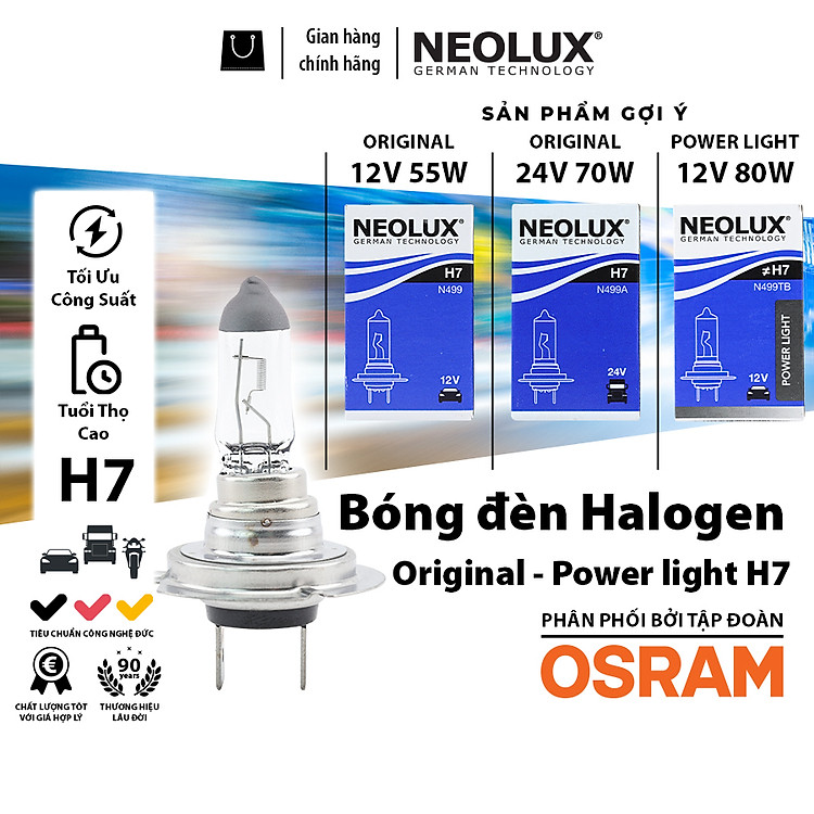 Bóng Đèn Halogen Power Light NEOLUX H7 12V 24V sở hữu ánh sáng vượt trội cùng tầm nhìn bao quát vừa trải đều ánh sáng, không gây lóa mắt lại tăng khoảng cách chiếu sáng.