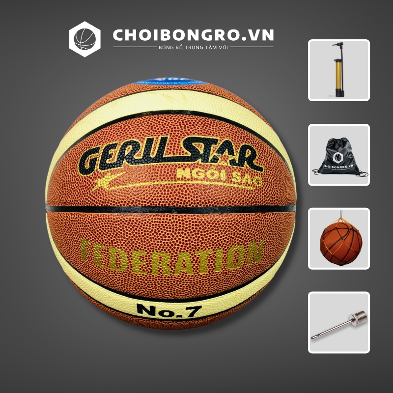 Thể Thao & Dã Ngoại > Dụng Cụ Thể Thao & Dã Ngoại > Bóng Rổ > Banh Bóng Rổ || Bóng rổ GERU STAR Federation - Bóng thi đấu chính thức Liên Đoàn Bóng Rổ Việt Nam | Choibongro.vn