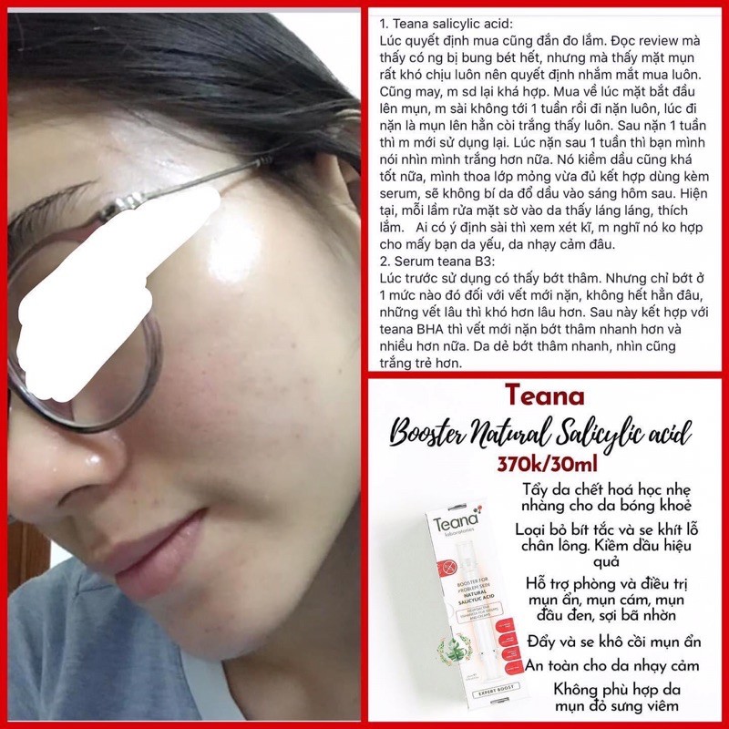 Sắc Đẹp > Chăm sóc da mặt > Tinh chất dưỡng || Booster Teana Natural Salicylic Acid làm sạch sâu lỗ chân lông, se cồi, ngừa và giảm mụn, cải thiện tone da