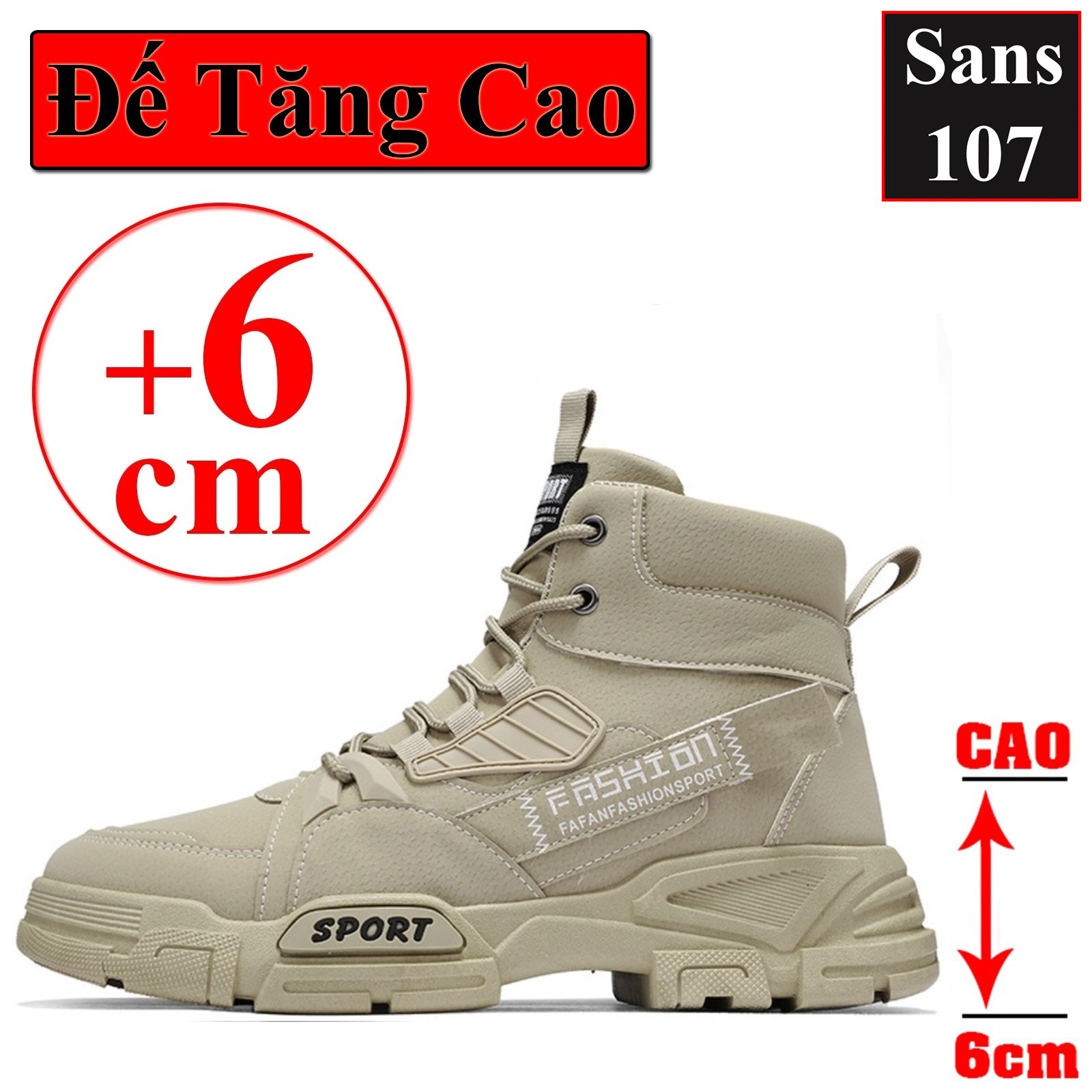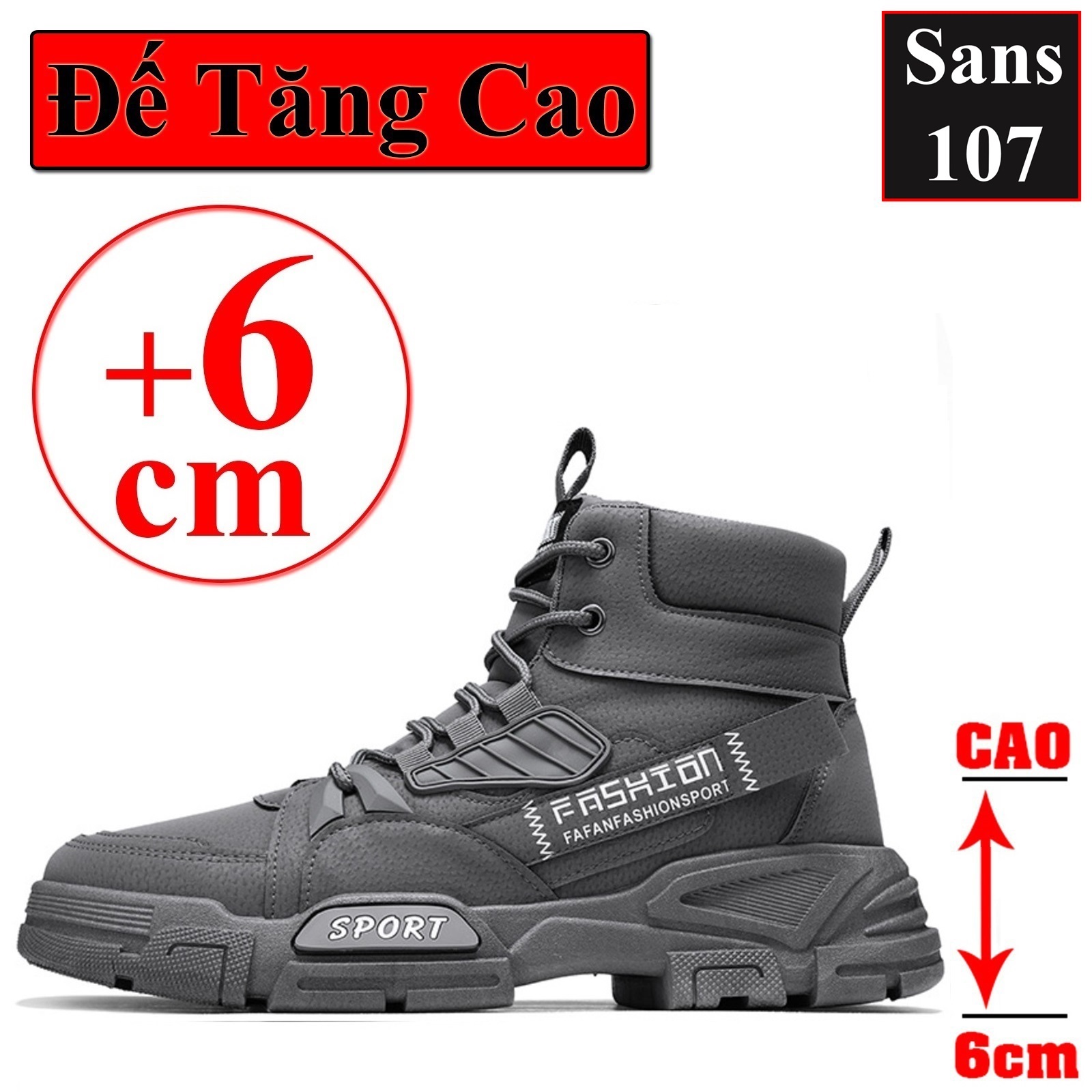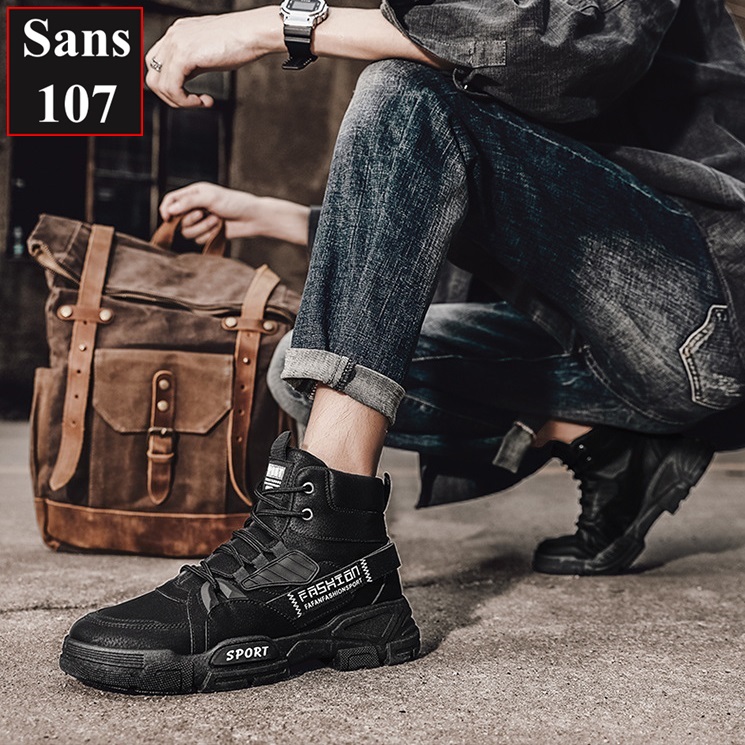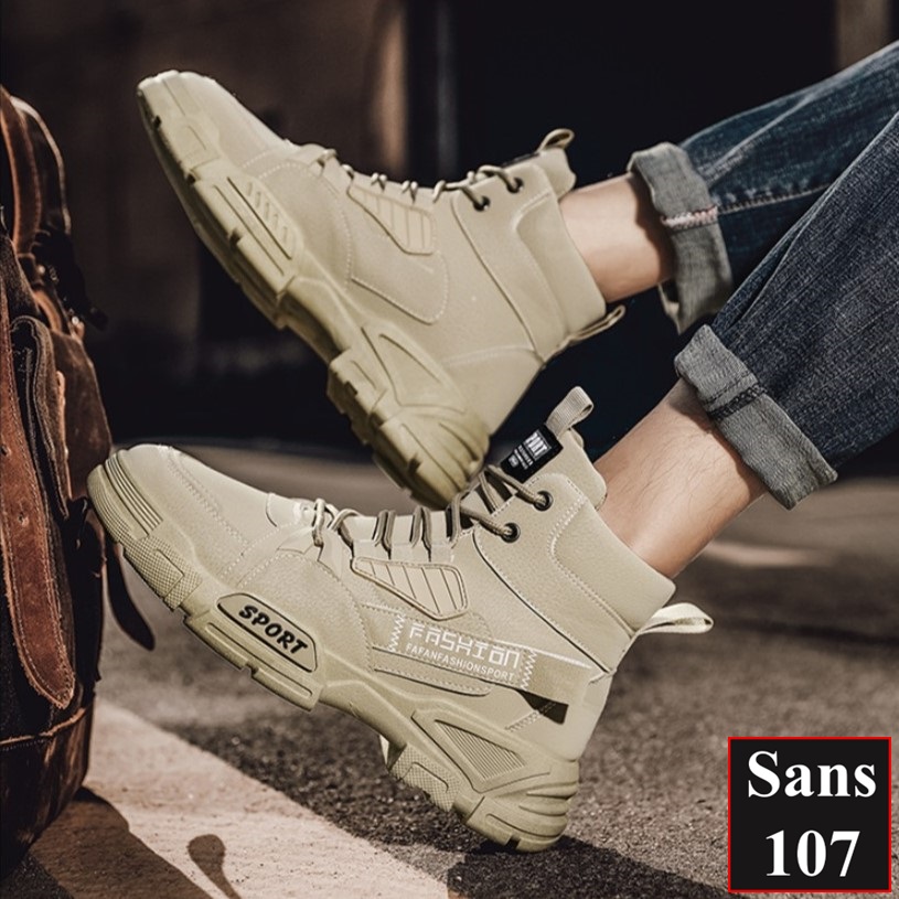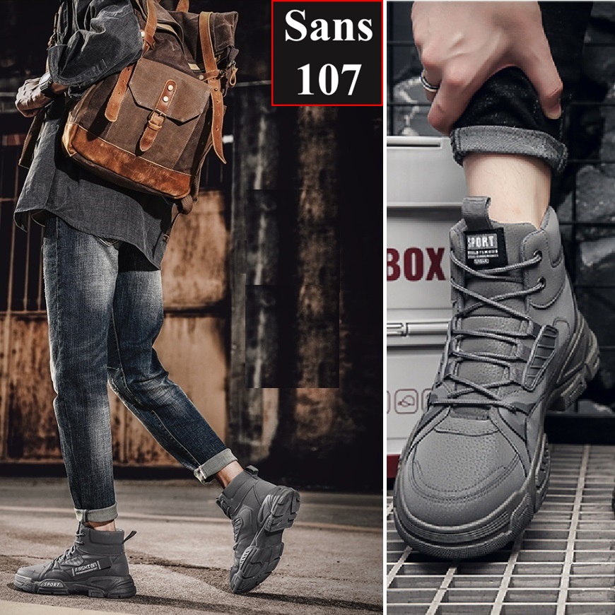 Boot nam cao cổ độn đế 6cm Sans107 boost đen bot xám be boots có dây buộc bốt lửng fullbox size 39 40 41 42 43 44