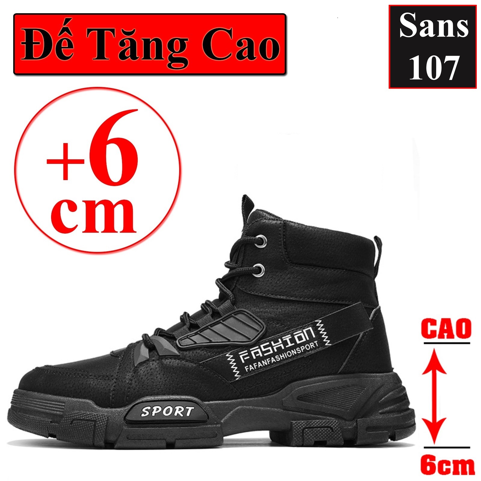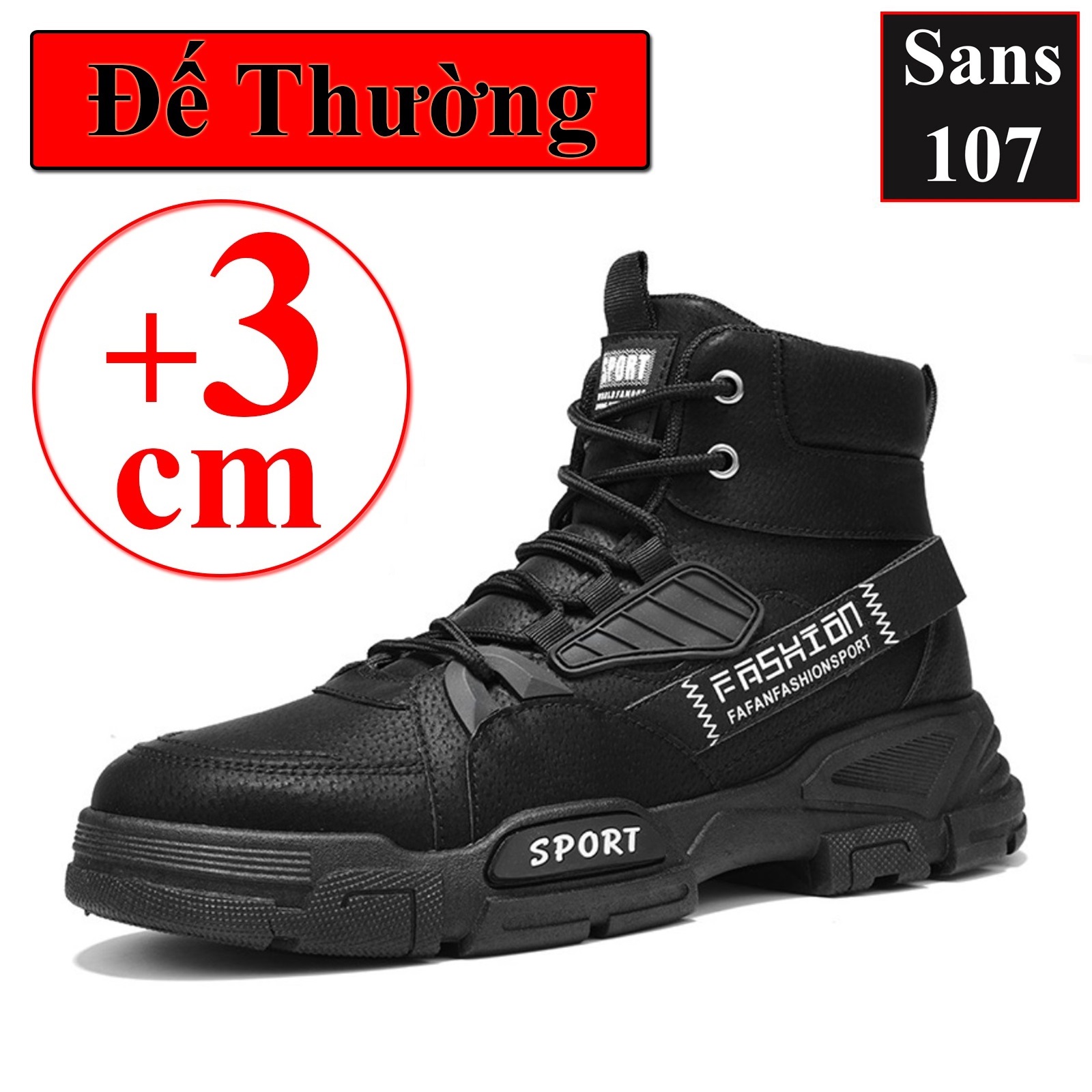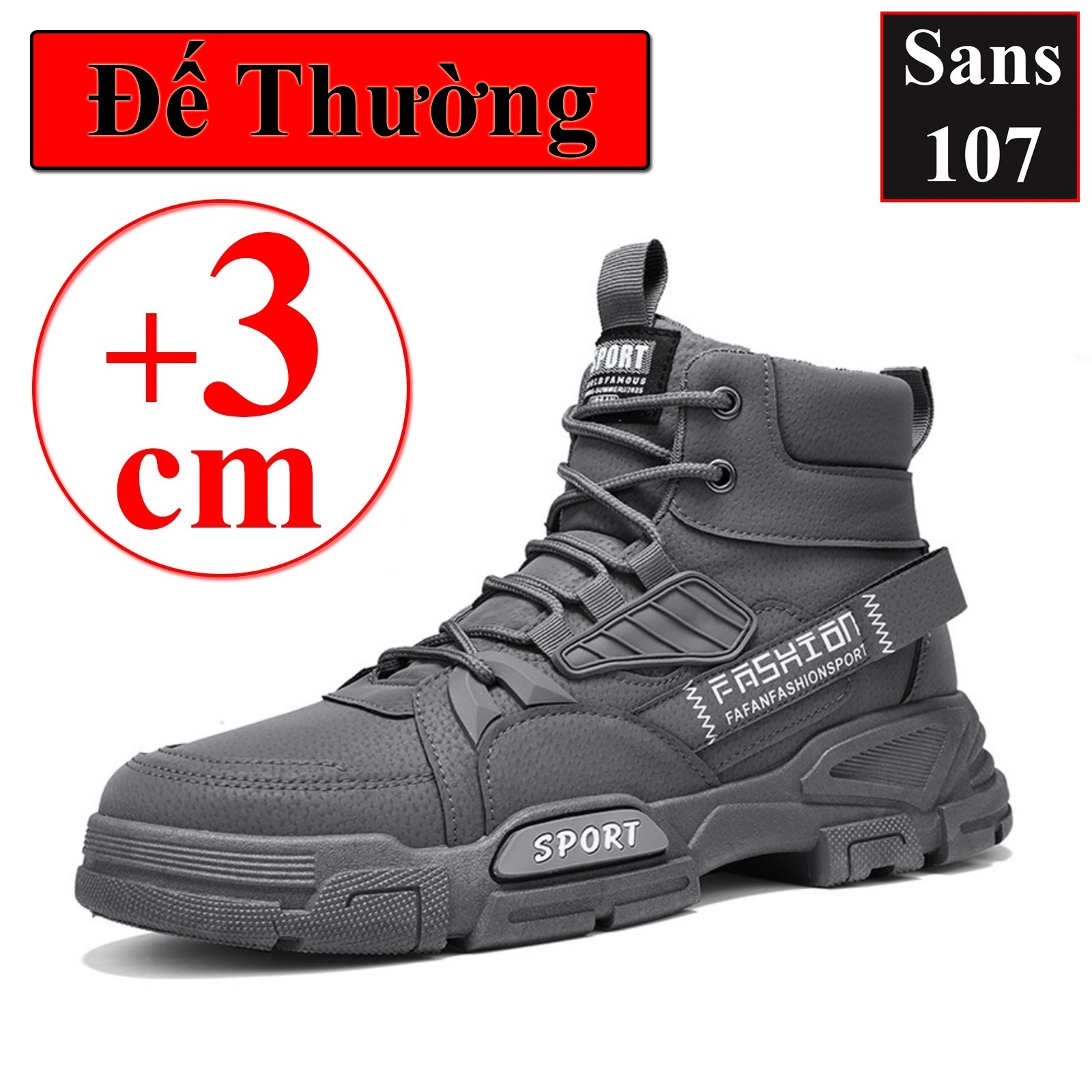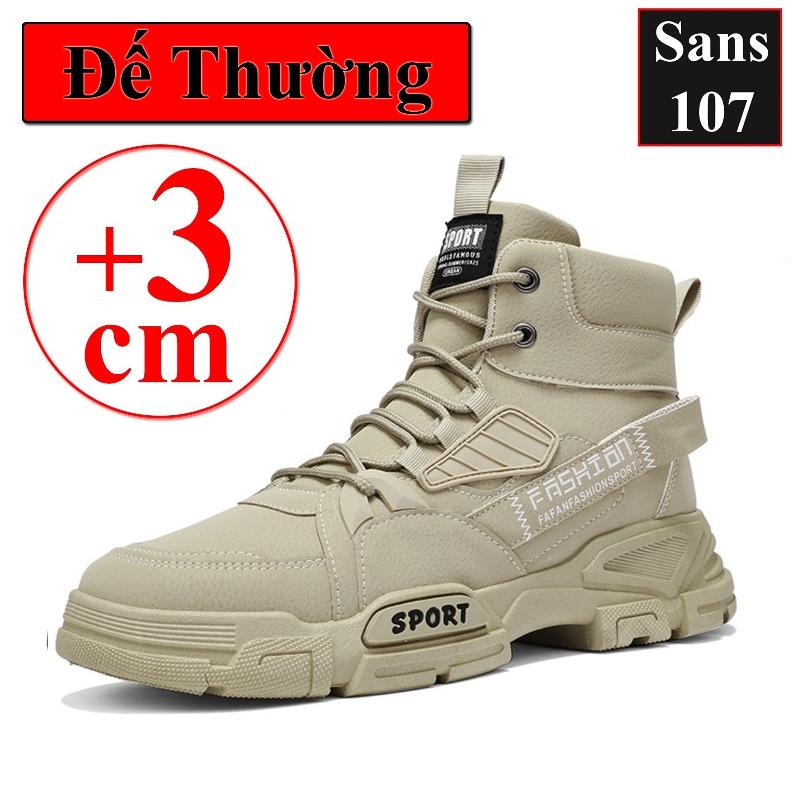 Boot nam cao cổ độn đế 6cm Sans107 boost đen bot xám be boots có dây buộc bốt lửng fullbox size 39 40 41 42 43 44