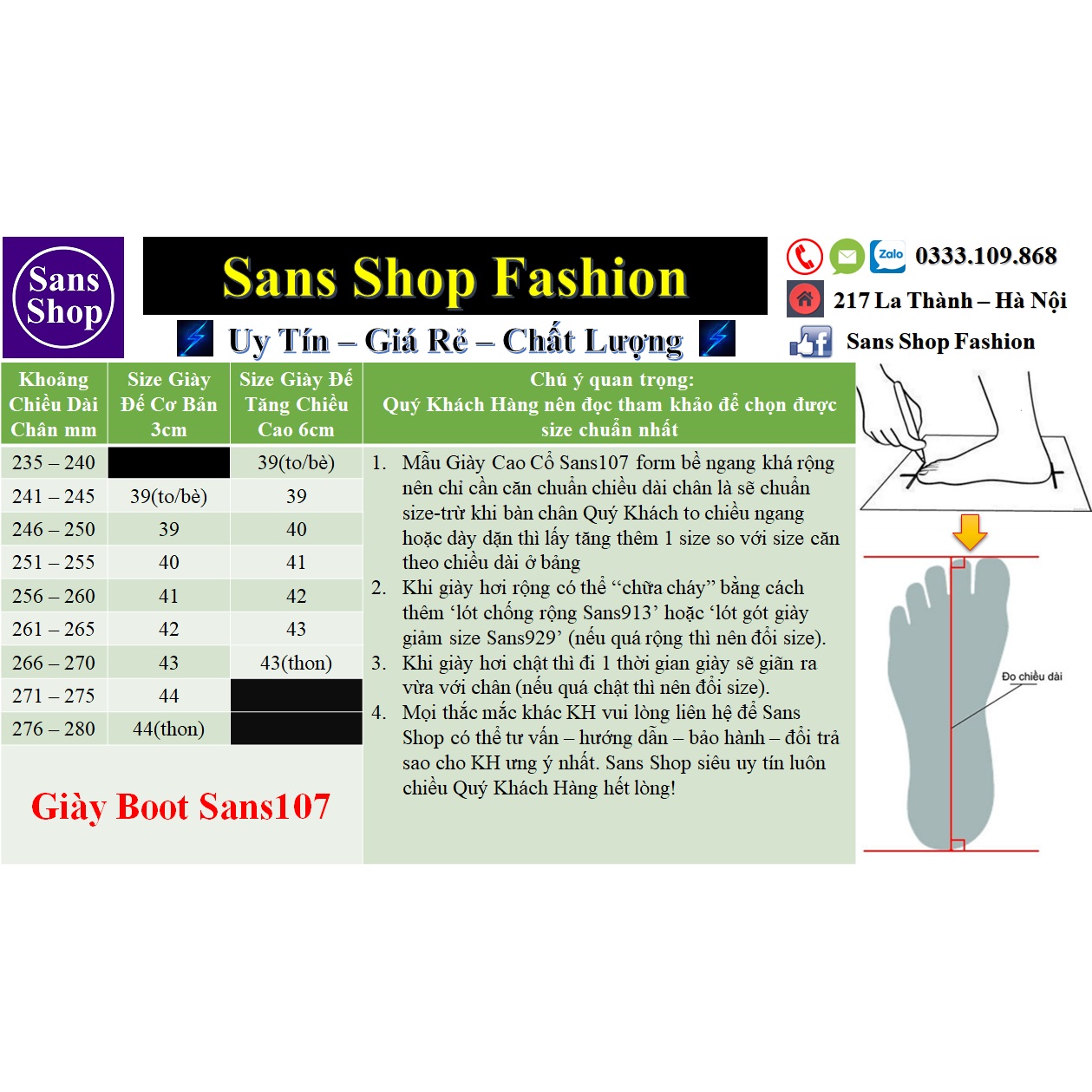 Nếu đi giày bốt Sans107 bị rộng, có thể dùng lót gót giảm size Sans929 để chống rộng