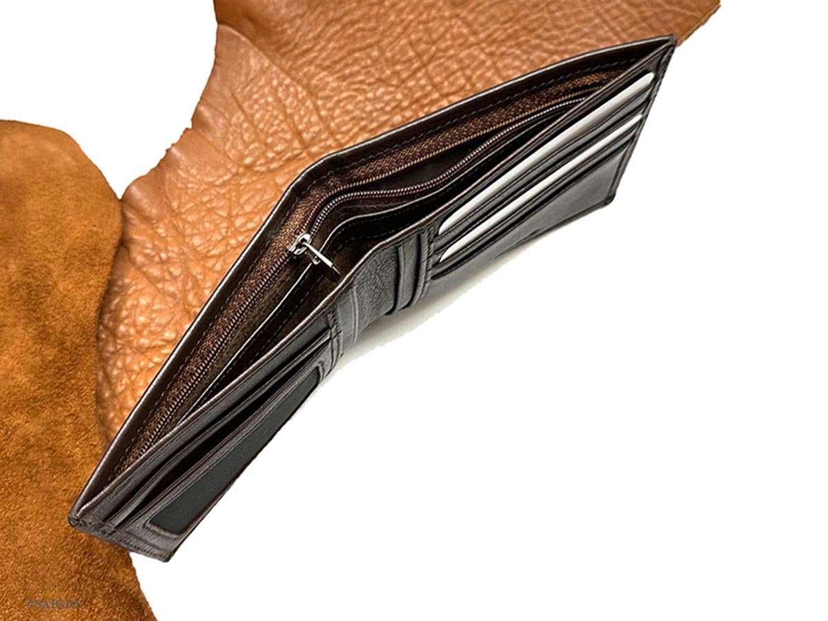 - 3 ngăn lớn đựng tiền, trong đó có một ngăn có dây khóa kéo.
