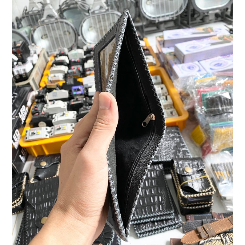 Bóp da bò - Ví da bò dập vân da cá sấu khâu tay tinh xảo - tặng dây đồng hồ khi mua 2 món đồ da bất kỳ trên đây giá sản phẩm là giá 1 chiếc ví nhé có 3 loại như sau 1. ví đựng tiền ( 2 ngăn có khóa giữa) 2. ví đựng điện thoại đứng 3. ví đựng gói thuốc, Hàng da bò thật và được ép vân cho giống kiểu da cá sấu hàng được khâu bằng tay, các đường chỉ viền khâu tinh xảo , mang đến độ đẹp, bền, tỉ mỉ cao
