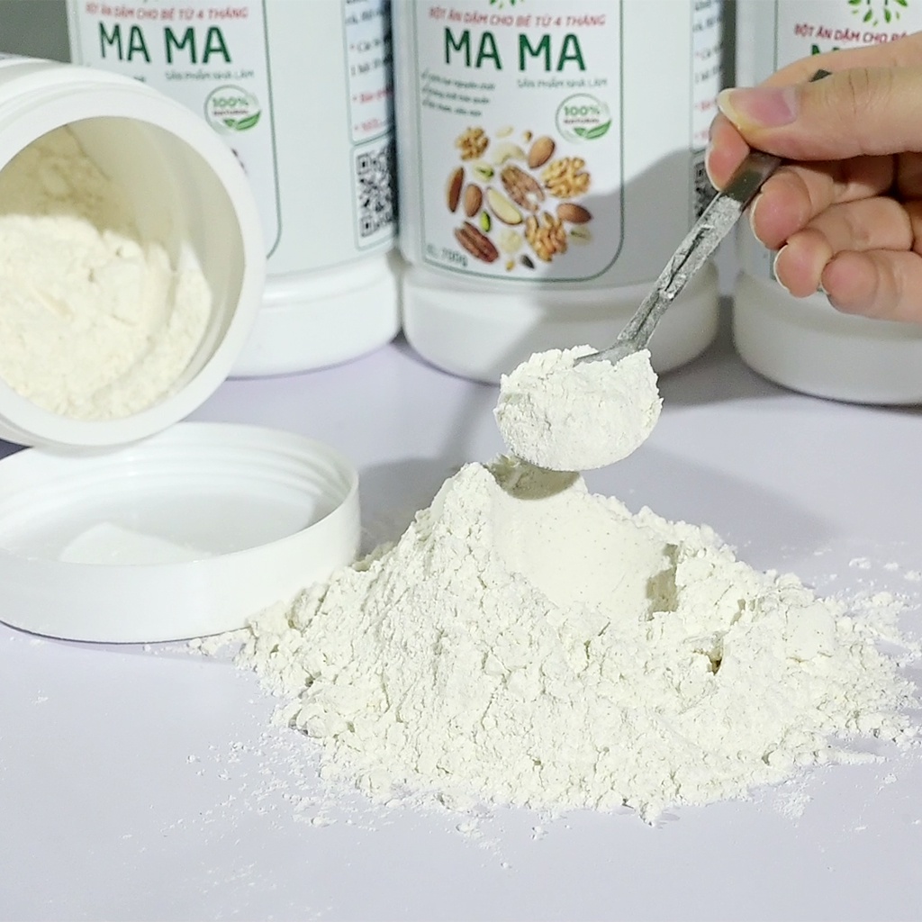 🔰 Thành phần của Bột ăn dặm Mama: - Bột ăn dặm mama được nghiền từ các loại hạt: óc chó, hạnh nhân, hạt chia úc, hạt sen, yến mạch, hạt điều, gạo lứt, gạo tám thơm đảm bảo được độ nguyên chất và thuần khiết nhất cho bột. - Bột bổ sung nhiều chất dinh dưỡng DHA, Kẽm, Vitamin A,B,... giúp bé phát triển não bộ, dễ tiêu hóa và hấp thu các chất dinh dưỡng khác.