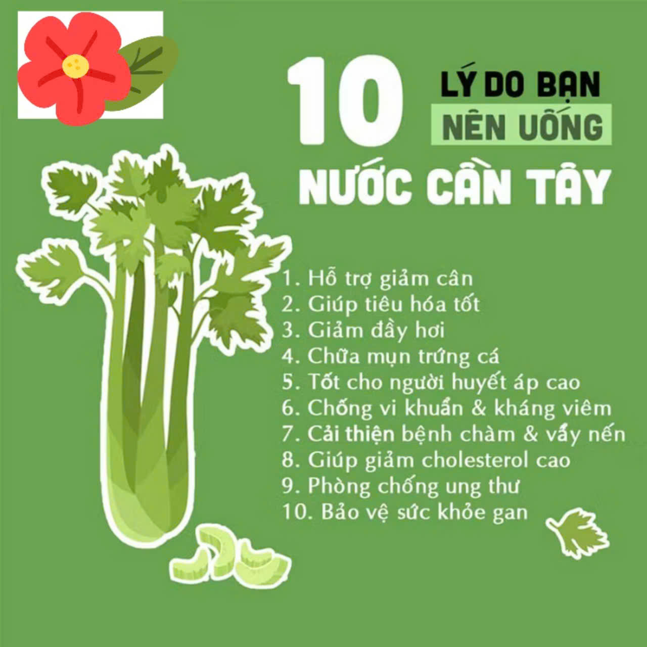 - Có thể kết hợp bột cần tây với các nguyên liệu khác như carot, cà chua, chanh hoặc dứa để làm sinh tố. Công thức sẽ linh động theo số lượng mà bạn mong muốn sử dụng cho bao nhiêu khẩu phần.