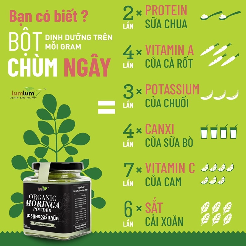 Giới thiệu Bột chùm ngây hữu cơ 150g Lumlum Organic Moringa Powder