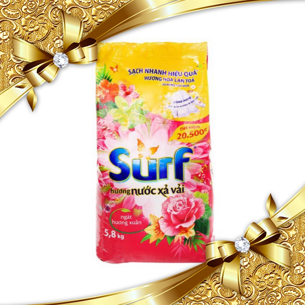 Giới thiệu Bột giặt Surf Ngát Hương Xuân 5,8kg, Tặng Nước Xả Vải Surf 750ml