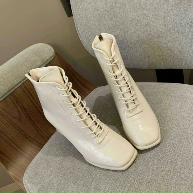 Giới thiệu Bốt Gót Vát Buộc Dây Da Bóng Mã Hàng Đẹp Lót Lông Kèm Hộp