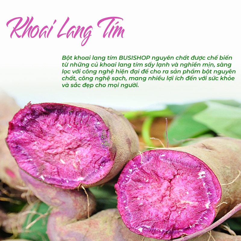 💦 Bột khoai lang tím được sản xuất ở dạng nguyên chất, không chứa bất kì một tạp chất nào nên rất bổ dưỡng và cần thiết để mà mỗi gia đình nên ưu tiên sử dụng. 💦 Là thực phẩm lành tính và không gây dị ứng nhất, hầu như phù hợp với mọi đối tượng và tuyệt đối không trộn lẫn các hóa chất gây nguy hại đến sức khỏe 💦 Bạn có thể dùng bột khoai lang tím như bữa ăn sáng giàu dinh dưỡng hằng ngày hoặc đan xen vào các bữa ăn nhẹ nhằm bổ sung thêm các khoáng chất dinh dưỡng thiết yếu cho bé, đặc biệt là trong giai đoạn phát triển.