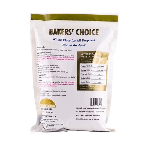 ❇ Baker choice số 11: + Độ ẩm/moisture: 14.0% max + Độ Tro/Ash: 0,42% max + Độ đạm/Protein: 9,5-10,5 % + Gluten ướt/Wet gluten: 29.0% min Công dụng/application: chuyên làm các loại bánh bao hấp,bánh bao chiên,bánh màn thầu,đặc biệt làm các loại mì sợi cao cấp,mì tươi,mì trứng,mì ăn liền.....
