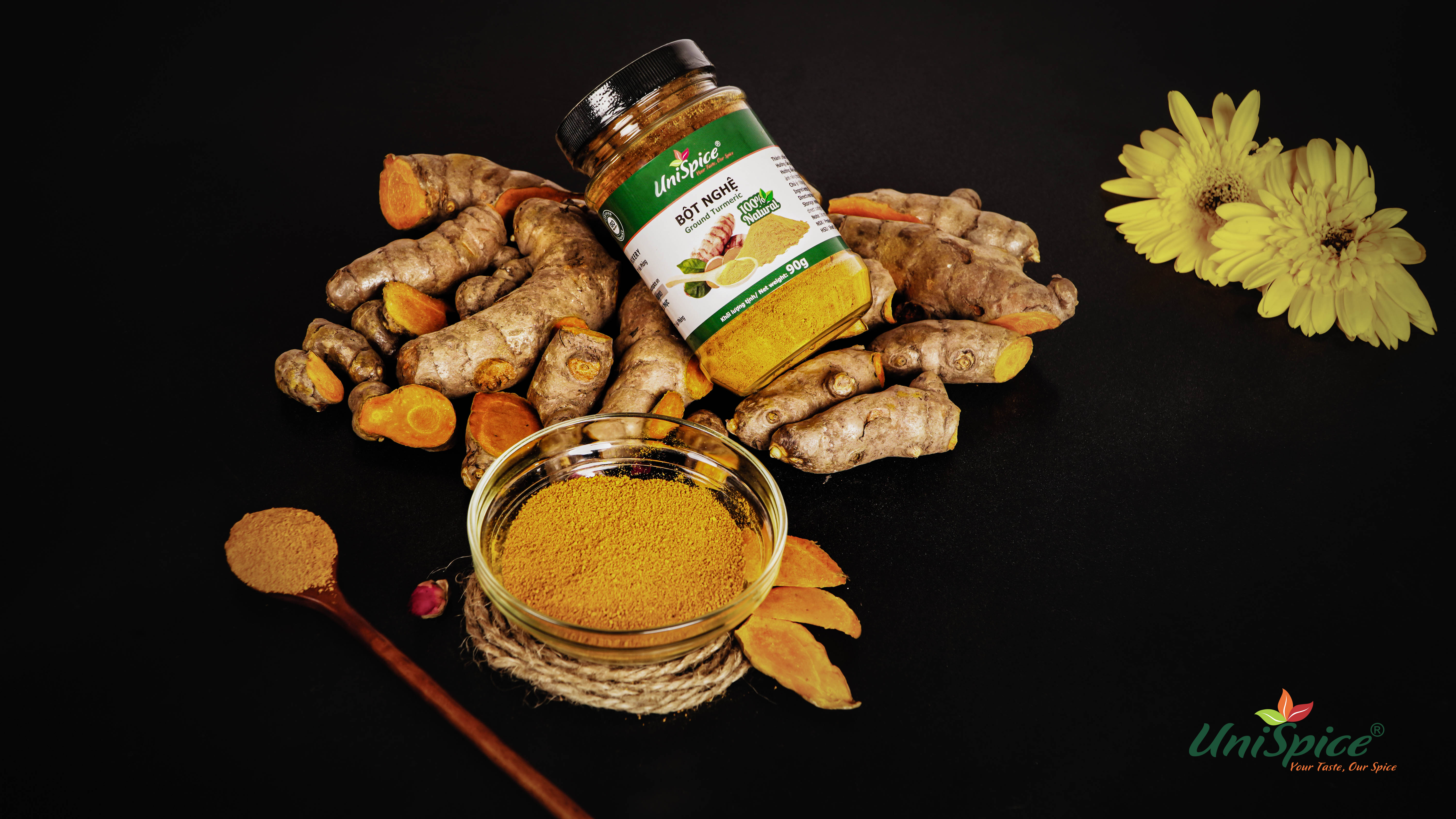 Sản phẩm gia vị từ UniSpice được làm từ 100% củ, quả, hạt tự nhiên, sản xuất an toàn theo quy trình khép kín, đáp ứng các tiêu chí không chất bảo quản, không sử dụng phụ gia thực phẩm. Bột nghệ với vị cay thơm đặc trưng được người đầu bếp kết hợp khéo léo cùng các nguyên liệu để tạo nên những món ăn thơm ngon và tinh tế. Ngoài ra màu vàng đặc trưng của bột nghệ còn được ứng dụng làm chất tạo màu thực phẩm tự nhiên và an toàn.