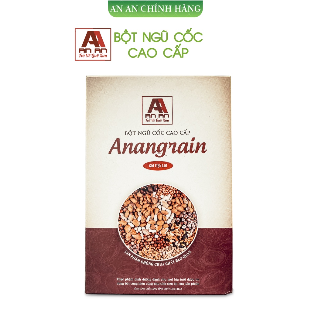 Bột Ngũ Cốc Dinh Dưỡng An An với tổng hợp tất cả dinh dưỡng các hạt ngũ cốc có trong 1 gói tiện lợi 18g. Bột ngũ cốc dành cho bà bầu giúp lợi sữa.