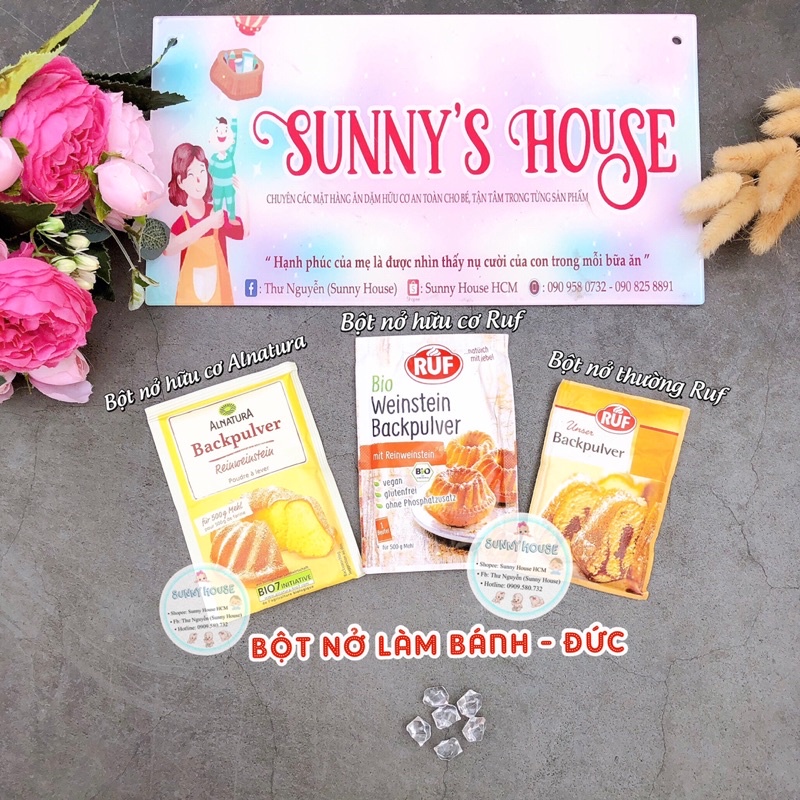 ✅ Bột nở hữu cơ làm bánh Đức gồm : bột nở hữu cơ Ruf, bột nở thường Ruf, bột nở hữu cơ Alnatura, làm các món bánh cần độ phồng xốp như muffin, gato, pancake, hotcake, cupcake,...