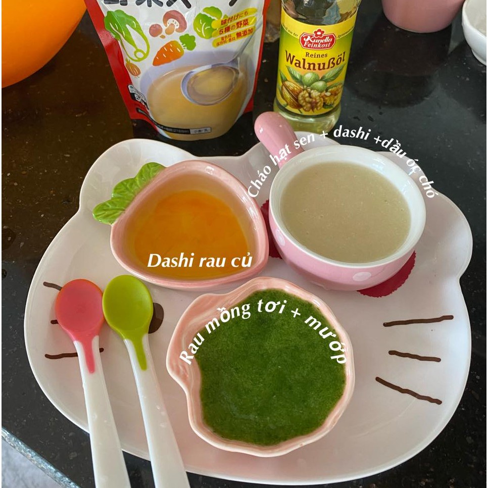 Như chúng ta đã biết, từ 5 tháng tuổi trở lên, ngoài việc uống sữa công thức, hay sữa mẹ, các bé đã bắt đầu có thể ăn dặm để bổ sung thêm chất dinh dưỡng. Khẩu vị của các bé khác với khẩu vị của người lớn; và đặc biệt đối với các bé dưới 1 tuổi thì các mẹ không nên tự ý nêm nếm gia vị vào bữa ăn của bé vì điều này làm cho bé rất khó tiêu hóa. Nhưng nếu không nêm nếm gia vị thì các bé sẽ rất khó ăn vì thức ăn không có mùi vị và rất lạt sẽ dễ khiến các bé đang tập ăn dặm càng trở nên ngán ngẫm, biếng ăn. Nhưng các mẹ có thể yên tâm. Nước dùng Dashi Pigeon được chiết xuất từ rong biển và cá bào nguyên chất và được kết tinh dưới dạng bột giúp mẹ nhàn hơn rất nhiều, không cần phải mất công lo nghĩ. Nước dùng Dashi Pigeon tạo vị ngọt, bổ sung thêm I-ốt cho bé. Thành phần: Dextrin, lactose, chiết xuất cá ngừ, chiết xuất rong biển, muối, nấm men (một phần của nguyên liệu bao gồm lúa mì) ============================ Dashi là loại nước dùng truyền thống của người Nhật, với mục đích mang lại vị thơm ngon và bổ sung thêm chất dinh dưỡng cần thiết cho mỗi bữa ăn, bột Dashi Pigeon vị rau củ 50g là lựa chọn ưa thích của mẹ dành cho bé đang trong giai đoạn ăn dặm. Với các thành phần tươi ngon cùng quy trình chế biến đạt chuẩn quốc tế, không sử dụng chất bảo quản, tạo mùi hay hương liệu, bột Dashi chắc chắn sẽ là người bạn đồng hành thân thiết của bé trong mỗi bữa ăn. Sản phẩm có hương vị rau củ tươi mát, giúp mẹ dễ dàng chọn lựa sao cho phù hợp với sở thích của bé. =============================== Hướng dẫn sử dụng và bảo quản – Sản phẩm dạng bột, các Mẹ nêm theo công thức 1 muỗng canh 2.5 gr pha với 15ml nước ở 60 – 80 độ C – Dùng để nêm vào cháo, súp, canh, đồ ăn dặm cho bé. – Có thể nêm tùy theo khẩu vị của bé – Một gói dùng được khoảng 20 lần nêm. – Sản phẩm dành cho các bé từ 5 tháng tuổi trở lên. – Không sử dụng: chất màu, chất bảo quản, hương liệu, gia vị hóa học. HSD: 12 tháng kể từ ngày sản xuất ============================= PHÂN LOẠI: 1/ Dashi Pigeon rong biển + cá ngừ bào 2/ Dashi Pigeon nấm+rau củ 3/ Dashi Pigeon gà + phô mai