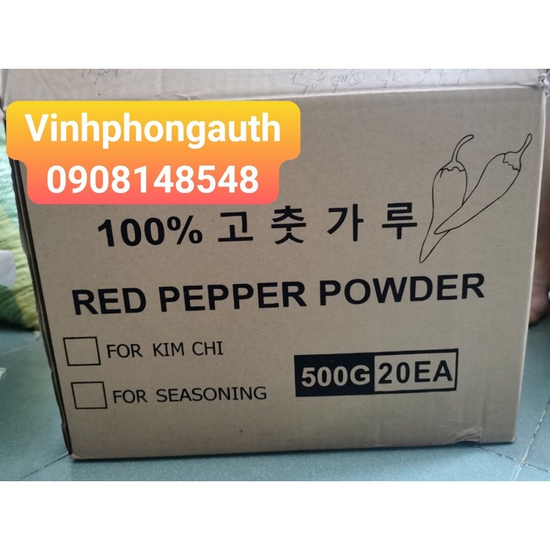 BỘT ỚT HÀN QUỐC - RED PEPPER POWDER 500gr 👉Hạn sử dụng (date): 1 năm 👉Nước sản xuất : Hàn Quốc 👉Kim Chi là một món ăn truyền thống cực ngon của người Hàn Quốc. Và để có một món Kim Chi thơm ngon đúng chuẩn thì Ớt Bột Hàn Quốc là một thành phần không thể thiếu. 👉Ớt Bột HànQuốc giúp cho món Kim Chi cay cay thơm thơm, hương vị đặc trưng mà những loại ớt bột khác không thể có được 👉 Không những vậy Bột Ớt Hàn Quốc còn có tác dụng giúp ngăn ngừa lão hóa, giữ cho cơ thể trẻ lâu. 👉Trong Bột Ớt Hàn Quốc chứa nhiều dưỡng chất, vitamin A, C, kali điều tiết chức năng sinh lý cơ thể, giúp tiêu hóa tốt, đốt cháy chất béo hỗ trợ cho việc giảm cân. 👉Ớt Bột Hàn Quốc cũng là nguyên liệu giúp chị em trổ tài chế biến nhiều món ăn ngon khác, như Mỳ Cay, Bò Khô, Lẩu, Nấu Ăn... 👉Bảo quản : bảo quản nơi khô ráo, thoáng mát, tránh để gần hóa chất và sản phẩm có mùi mạnh. 👉Giá hợp túi tiền rất tiết kiệm 👉Shop chuyên cung cấp các loại gia vị 👉Giao hàng toàn quốc 👉Cần mua số lượng lớn hãy nhanh tay liên hệ 📞📞📞 0908148548📞📞