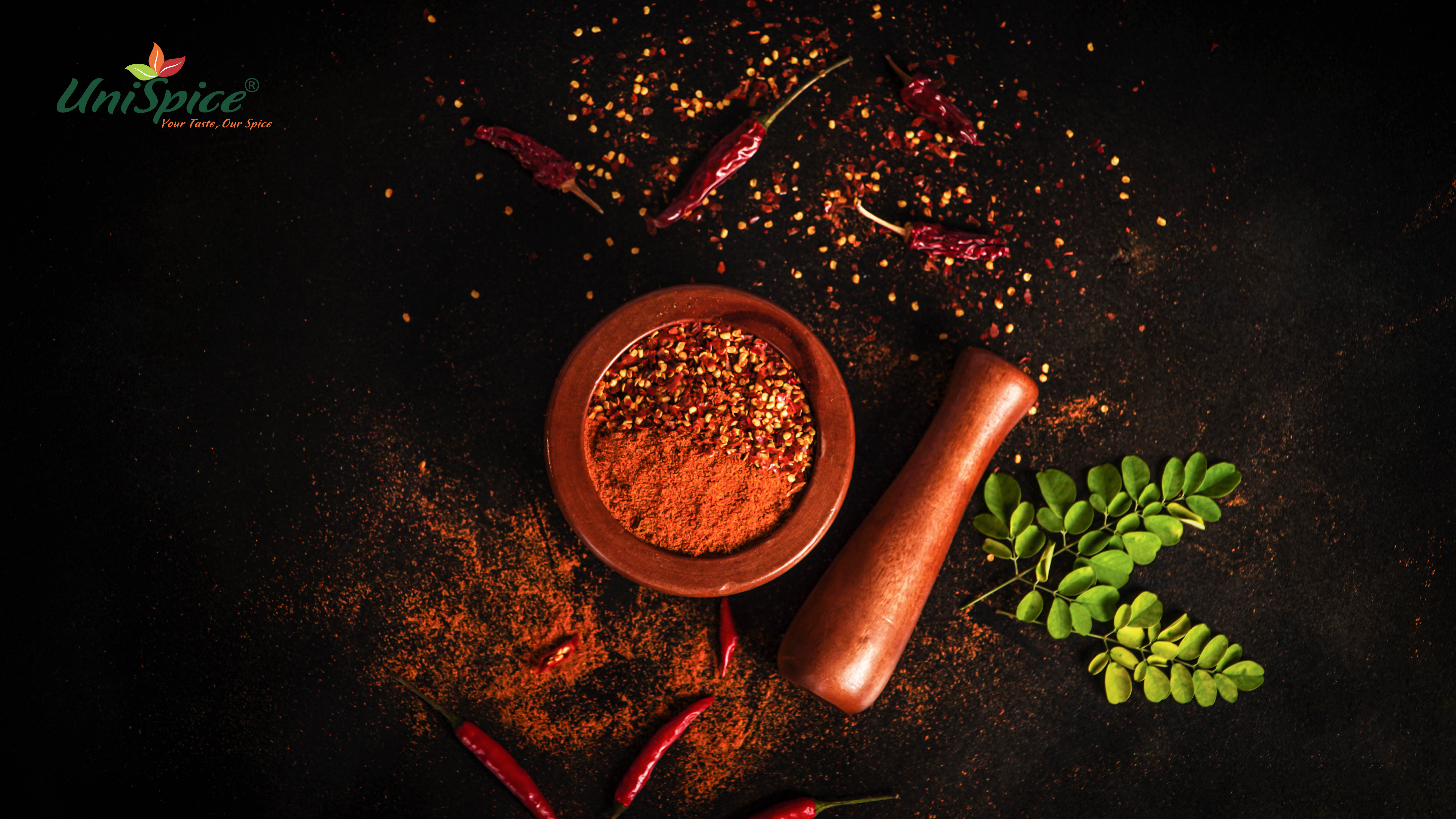 Sản phẩm bột ớt của UniSpice được chế biến từ 100% nông sản tự nhiên, không lẫn tạp chất, lưu giữ hương vị cay thơm của ớt tươi.