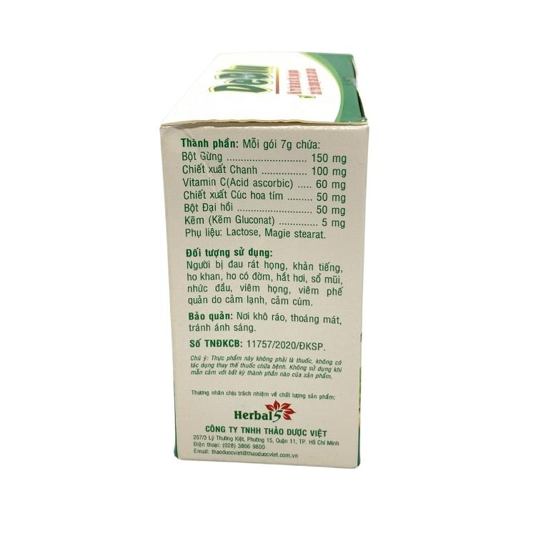 Hỗ trợ làm ấm cơ thể, giúp giảm các triệu chứng ho khan, ho có đờm, hắt hơi, sổ mũi, nhức đầu, viê..m họng, v..iêm phế quản do cảm lạnh, cảm cúm.
