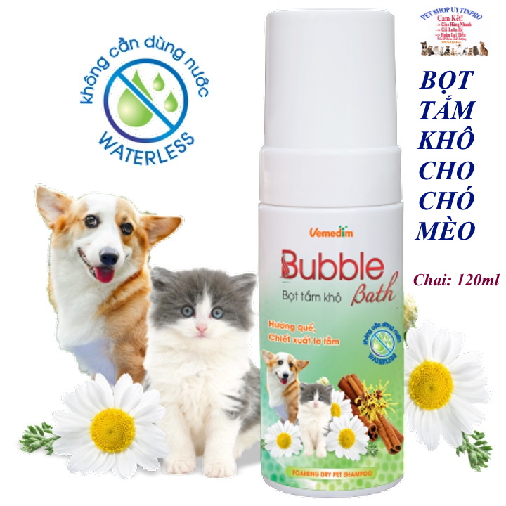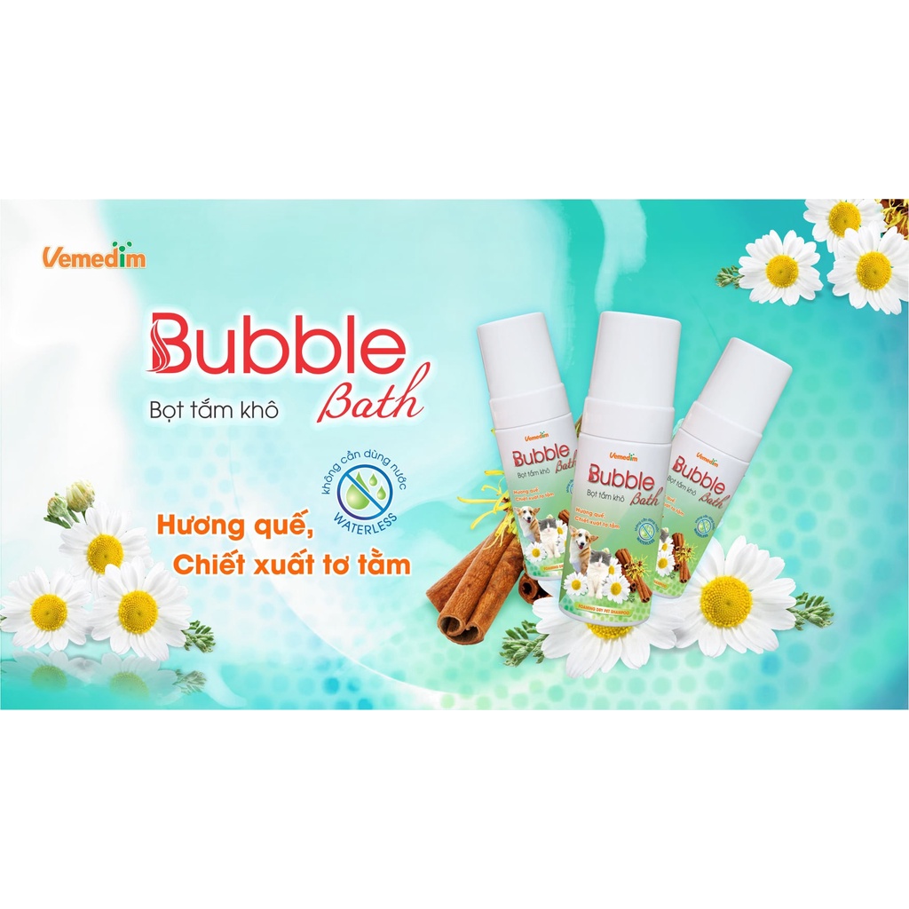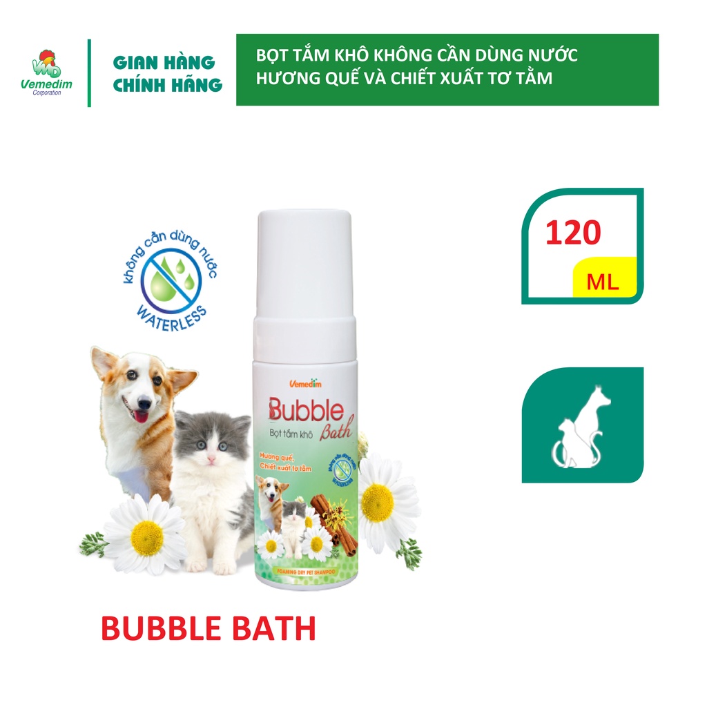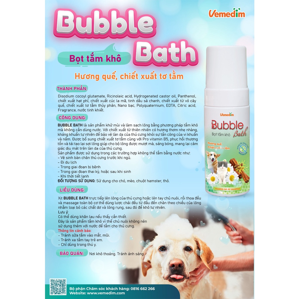 Bọt tắm khô cho Chó Mèo Vemedim Bubble Bath Chai 120ml Giúp khử mùi và làm sạch lông mà không cần dùng nước Sx tại VN