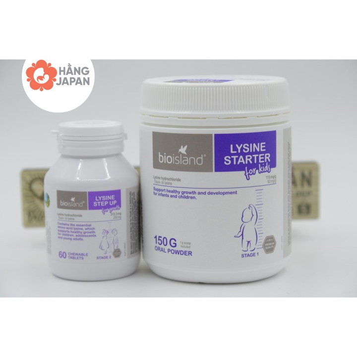 ⭐ Thông Tin Chi Tiết: • Lysine là một trong 12 axit amin thiết yếu cần có trong bữa ăn hằng ngày. Nó hỗ trợ hấp thụ và duy trì Canxi, ngăn cản sự bài tiết khoáng chất này ra ngoài cơ thể. Vì vậy, lysine có tác dụng hỗ trợ tăng trưởng chiều cao. Tuy nhiên, cơ thể không tự tổng hợp được chất này mà phải được cung cấp qua thực phẩm. Bioisland Lysine là thực phẩm bổ sung Lysine giúp tăng cường chiều cao cho trẻ được ưa chuộng tại Úc, với hai dạng bột (dành cho trẻ từ 7 tháng - 6 tuổi) và dạng viên (trẻ trên 6 tuổi).
