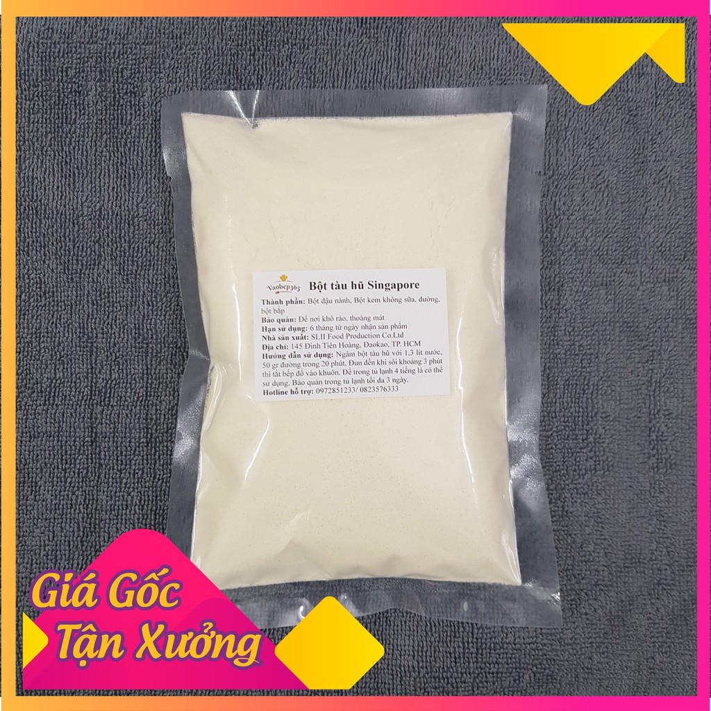 Giờ đây bạn không còn phải làm nhiều công đoạn để có một bát tàu hũ trân châu hoặc tào phớ nữa. Tất cả đã có bột tàu hũ Sun Soy Mix Singapore, bạn để đổ nước, bắc bếp đun, chỉ sau 5 phút là đã có món tráng miệng mùa hè ngon hành, mát rượi. Thành phân trong bột tàu hũ Singapore: - Bột đậu nành - Bột gelatin - Bột kem không sữa - Chất ổn định INS 407 - Chất tạo hương tự nhiên - Đường Lưu ý: Sản phẩm được chiết từ gói lớn 5 kg để phục vụ các chị em chỉ có nhu cầu nấu vài chén để gia đình thưởng thức ngày cuối tuần, ngày lễ. Nếu chị em muốn mua để kinh doanh vui lòng chat zalo để Vào bếp 365 tư vấn kỹ hơn ạ. Công dụng: - Dùng nấu tàu hũ trân châu đường đen - Dùng để nấu tào phớ - Dùng để nấu pudding trong các món chè Cách sử dụng sản phẩm, Vào Bếp 365 sẽ đính kèm khi đóng sản phẩm gửi khác hàng. Và đội tư vấn viên của shop sẽ hỗ trợ thêm nếu khách hàng yêu cầu. Nhưng tóm lại là cực dễ như cắm cơm, đun nước vậy.