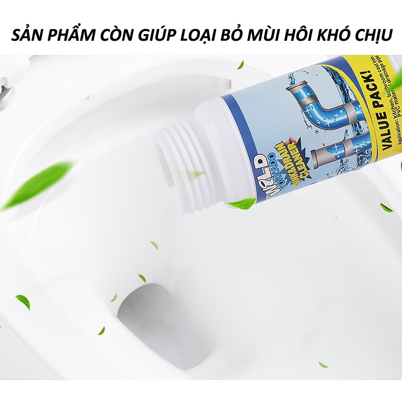 Đây là sản phẩm bột thông tắc cống tiện lợi giúp cho bạn có thể thông tắc cống một cách nhanh nhất hiệu quả nhất mà không hề mất nhiều công sức hay tốn quá nhiều chi phí cho việc thuê thợ xử lí vô cùng tốn kém. Lọ bột thông cống gồm các hoạt chất đặc biệt có tác dụng làm mềm và phân huỷ các tạp chất thải hữu cơ trong đường ống thoát nước (rêu, thức ăn thừa, cặn bã, giấy, rác, xác động vật…) giúp chúng thông được hoàn toàn mà không làm hư hại tới hệ thống đường ống.