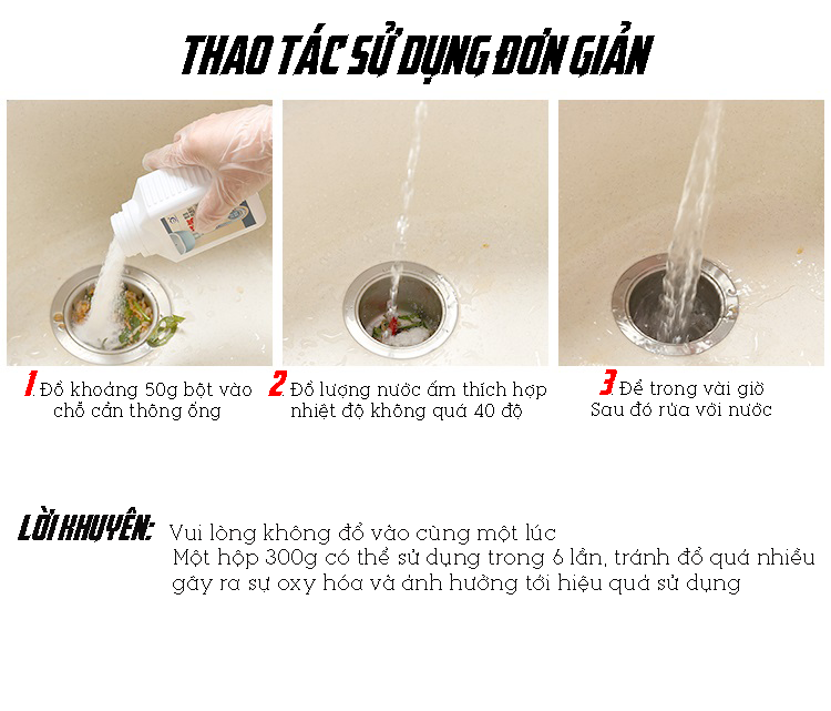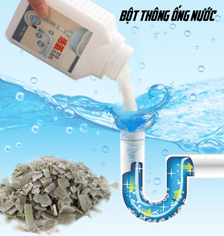 Bột Thông Ống Nước Siêu Mạnh sẽ giúp bạn thông sạch mọi tắc nghẽn thật nhẹ nhàng chỉ trong tích tắc bằng cách hòa tan các vết dầu mỡ, tóc, giấy, cặn xà phòng và các chất hữu cơ khác.