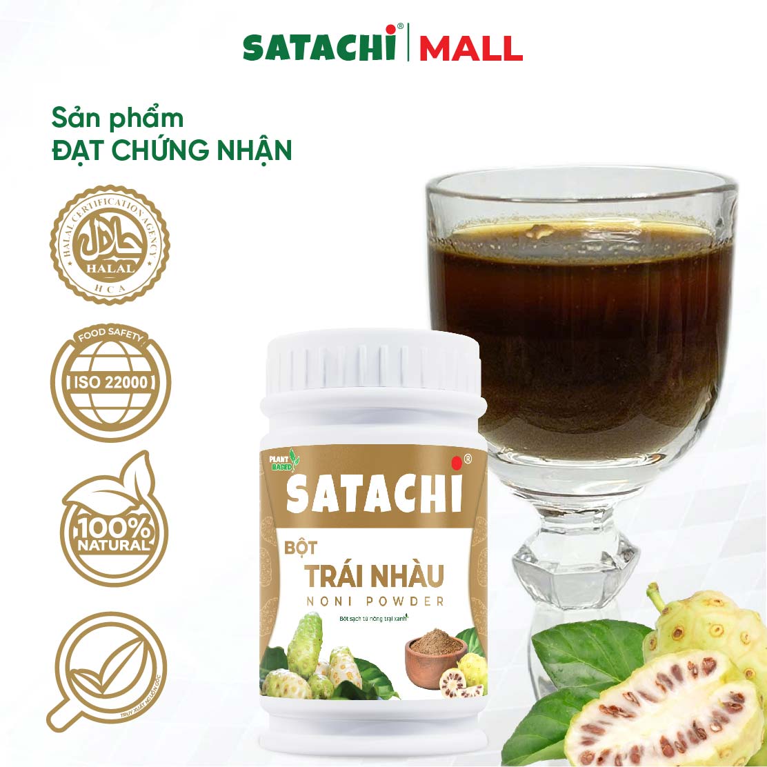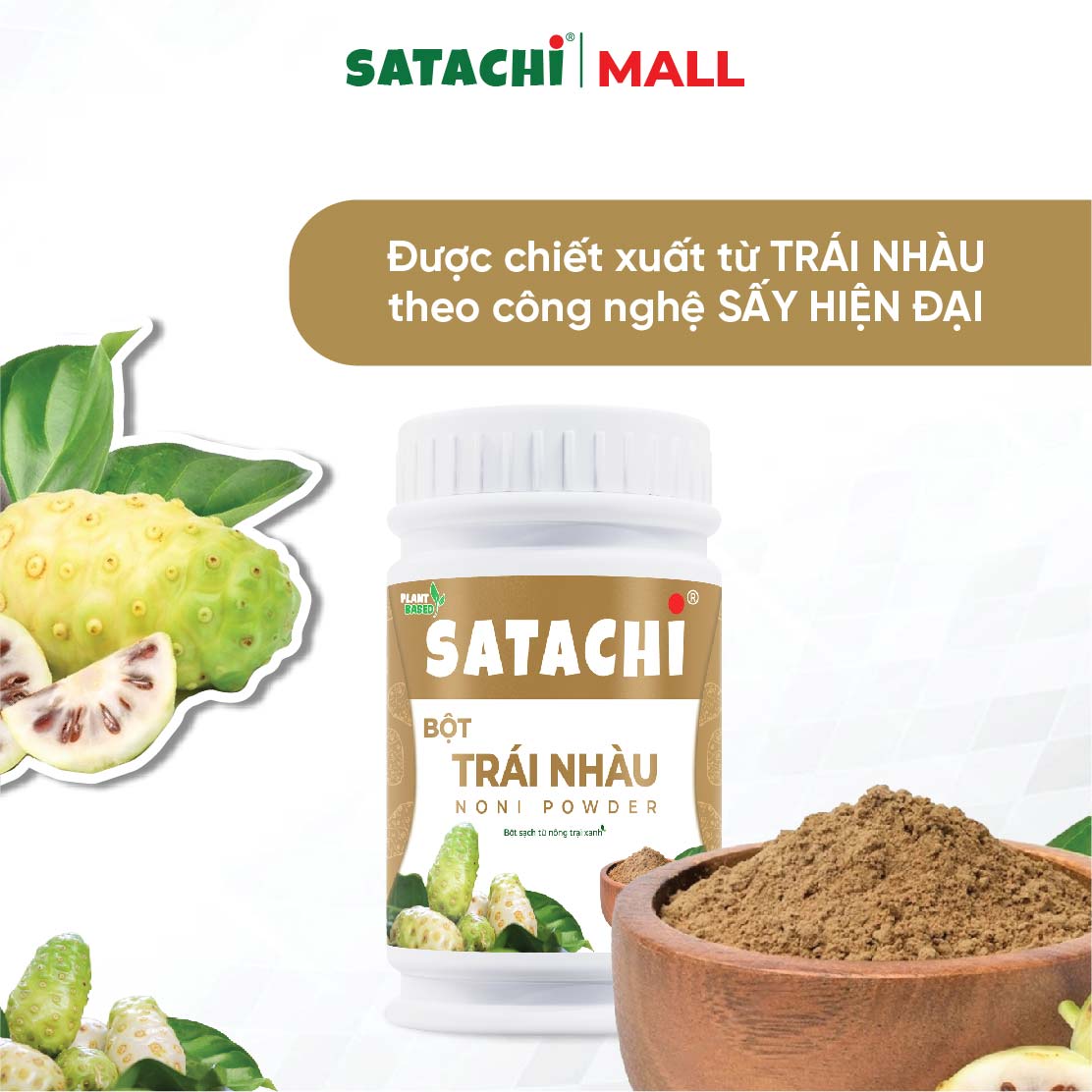 Bột Trái Nhàu Nguyên Chất SATACHI được sản xuất từ 100% trái nhàu tự nhiên, áp dụng theo công nghệ sấy hiện đại và nghiền mịn, giúp giữ lại trọn vẹn màu sắc, hương vị và giá trị dinh dưỡng của quả nhàu.