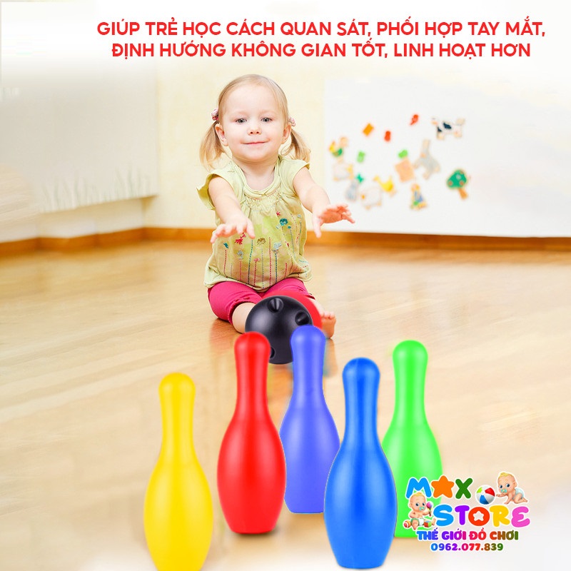 - Tăng cường khả năng vận động và khéo léo: “Bowling kids” bao gồm 2 bóng và 10 quả ky với kích thước vừa phải phù hợp với bàn tay của trẻ, để trẻ có thể dễ dàng cầm nắm.