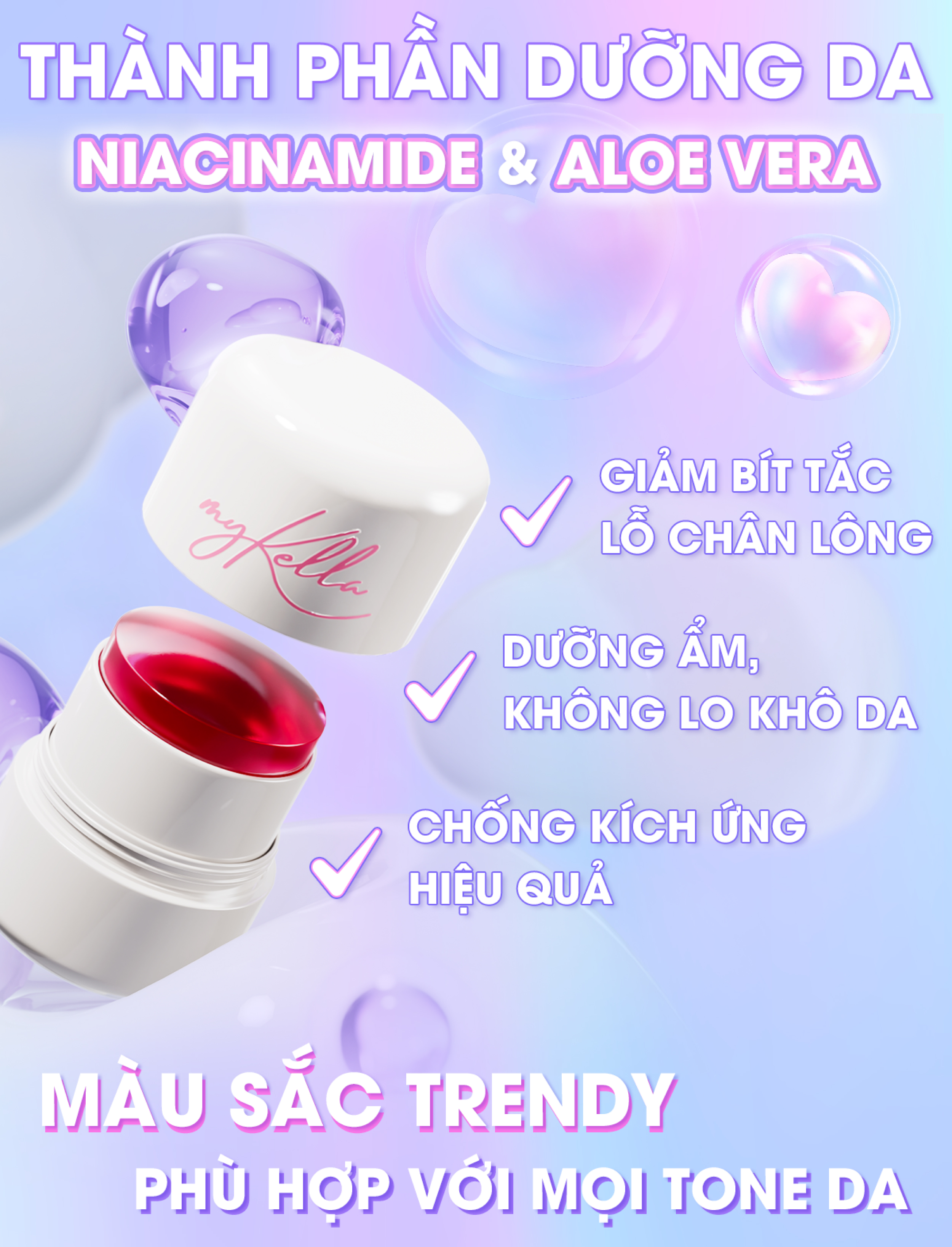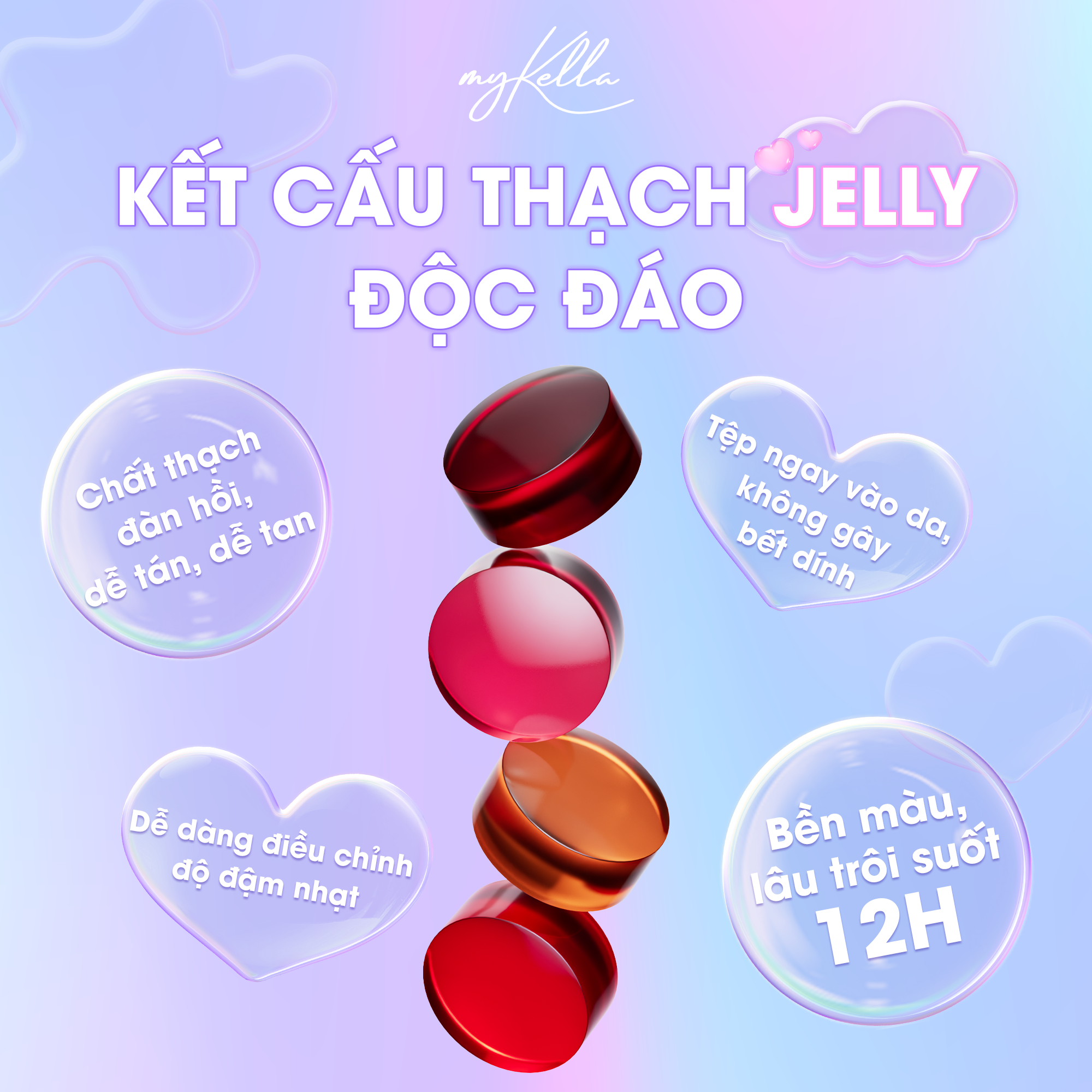 - Má hồng thạch đa năng myKella dùng được cho cả má và môi. Sản phẩm thuộc dòng makeup dưỡng da, kết cấu dạng thạch jelly dẻo dai, dễ tán tạo hiệu ứng ửng hồng tự nhiên và không gây mốc nền.