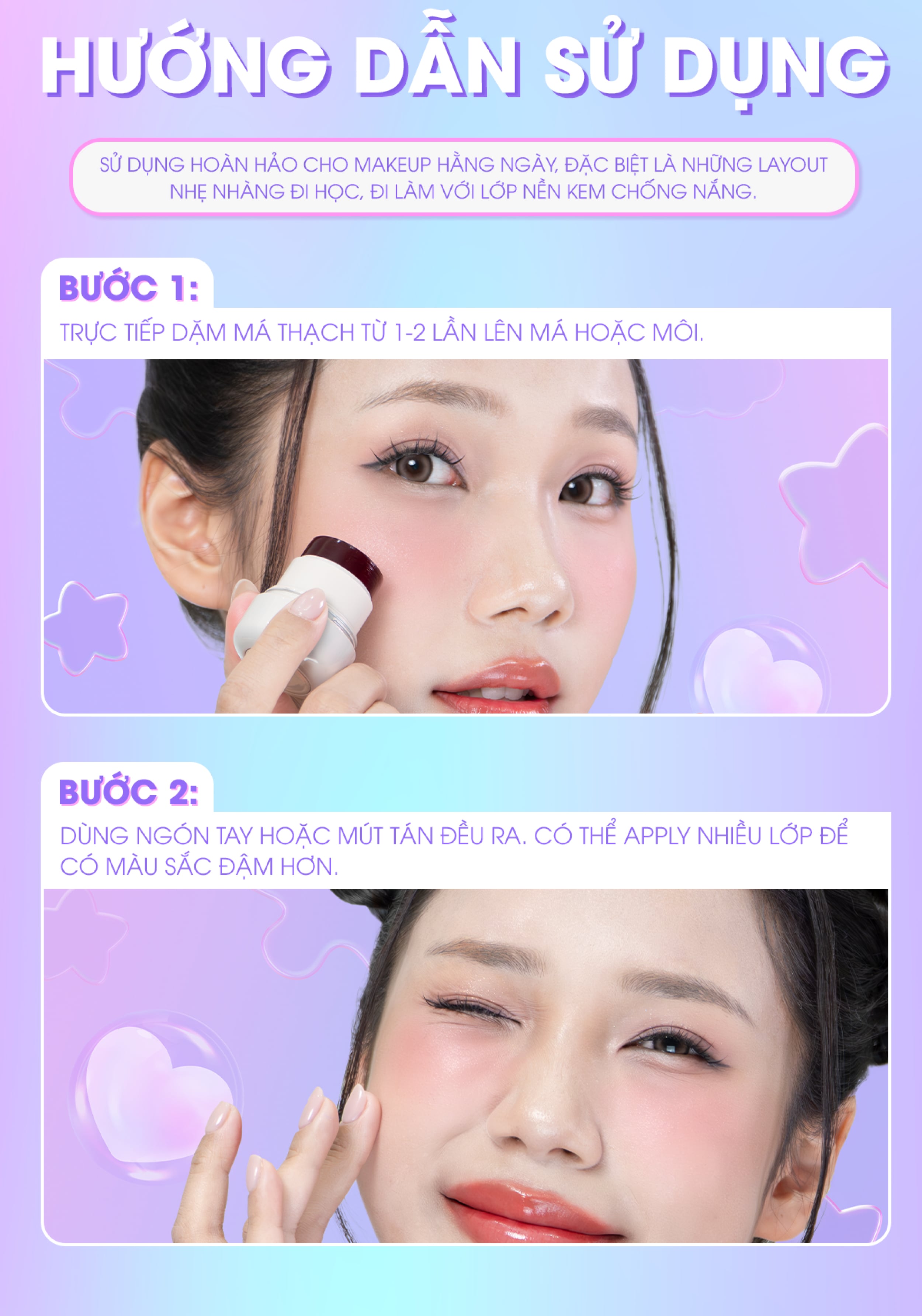 - Má hồng vừa có thể làm son môi vừa là má hồng tint cho má. Sản phẩm có chứa Niacinamide và Lô hội giúp dưỡng da và hỗ trợ kiềm dầu.