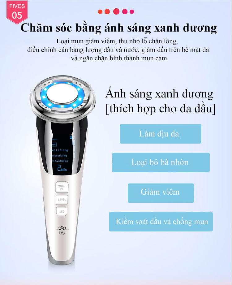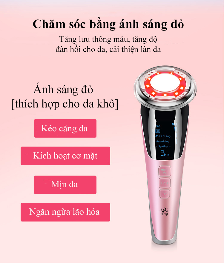 Kết hợp chế độ ánh sáng đỏ và xanh dương, trẻ hóa sáng da và giảm mụn