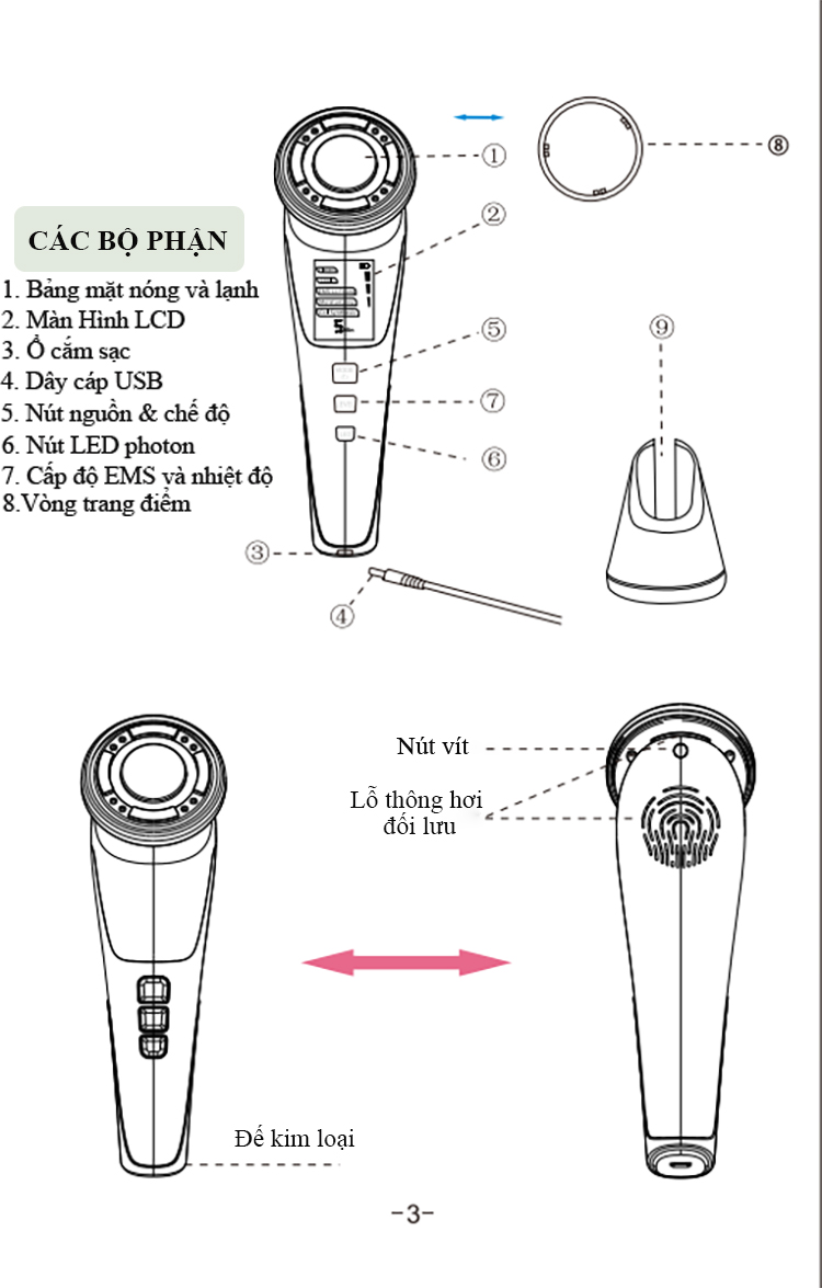 Giới thiệu Búa Điện Di Massage Mặt Làm Đẹp Da 5 in 1 Photon Nóng Và Lạnh EMS Kèm Máy Massage Làm Đẹp Ion RF Loại Bỏ Quầng Thâm - Làm Mờ Nếp Nhăn - Giảm Mệt Mỏi