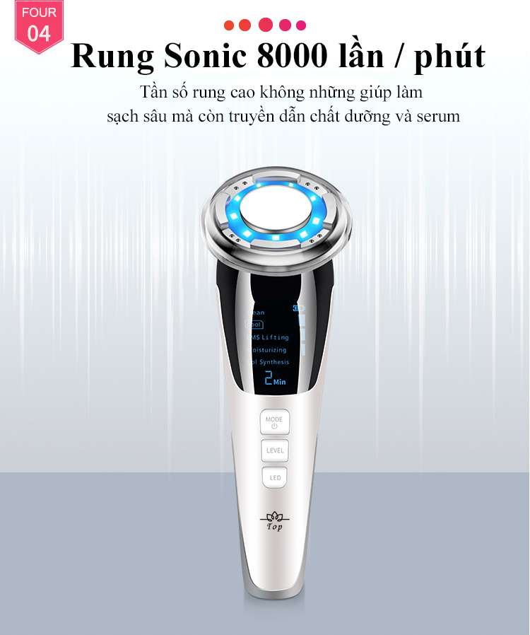 Máy Massage Mặt Làm Đẹp Da 5 in 1 Photon Nóng Và Lạnh EMS, Giúp Nâng Cơ Mặt, Rửa Sạch Sâu, Tăng Cường Hấp Thụ Và Khóa Giữ Tinh Chất Dưỡng DaĐặc điểm nổi bật:1 máy nhỏ gọn giải quyết, cải thiện 7 vấ...
