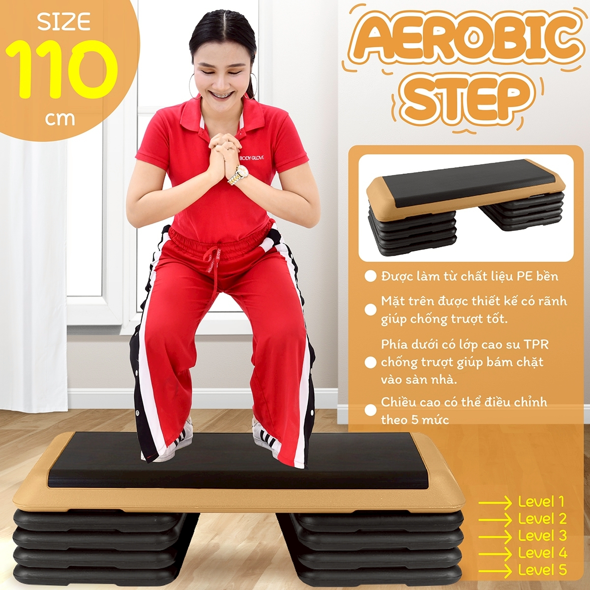 Tập Aerobic là một trong những cách giảm cân, lấy lại vóc dáng hiệu quả và nhanh chóng. Các bài tập Aerobic giảm cân giúp đốt cháy tối đa lượng calo dư thừa, ngăn ngừa tích trữ mỡ trên cơ thể. Dụng cụ chuyên dùng cho các bài tập thể dục thẩm mỹ, tập aerobic và đặc biệt là các bài tập chân. Bục phù hợp sử dụng cho các phòng tập chuyên nghiệp hoặc dùng để tập tại nhà.