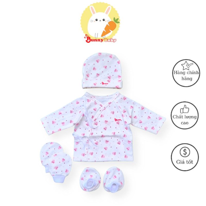 Giới thiệu Bunnybaby - Set áo sơ sinh 4 món kèm mũ vớ cho bé 3-5kg